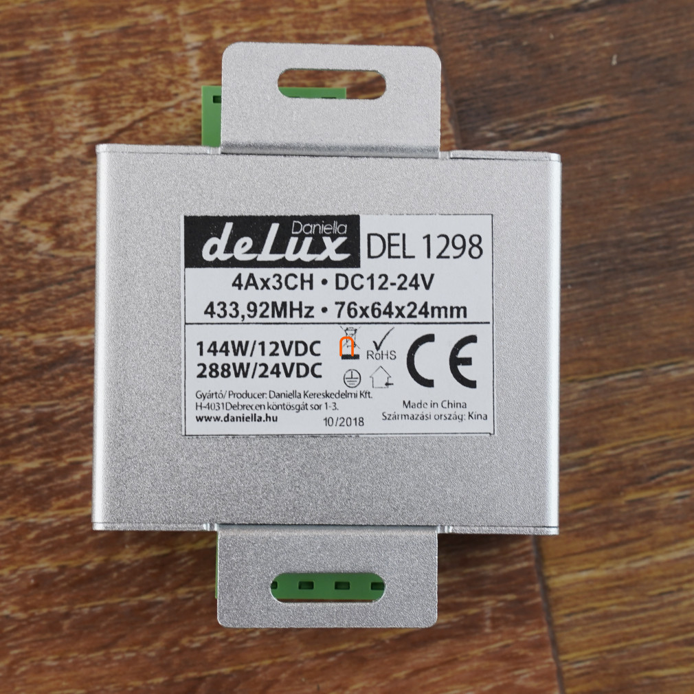 Amplificator RF pentru benzi LED 144 W (12 Vcc), 288 W (24 Vcc), 4 A*3 canale, 433,92 MHz, IP20, deLux DEL1298
