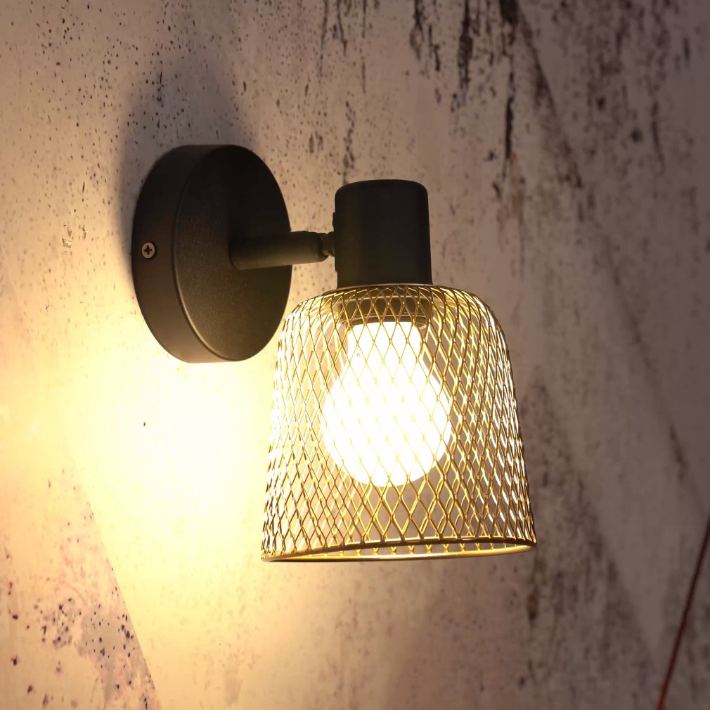 Lampa de perete Coslada Eglo 900693 are un abajur din plasă și detalii aurii, conferindu-i un aspect modern în orice spațiu interior. Corpul lămpii este realizat din oțel într-o combinație de negru și auriu, prevăzut cu un singur soclu E27 care poate acomoda o sursă de lumină înlocuibilă. Produsul nu include o sursă de lumină, astfel încât fluxul luminos, temperatura culorii și puterea depind de becul utilizat. Lampa are un grad de protecție IP20, fiind potrivită numai pentru utilizare în interior. Dimensiuni: lungime 130 mm, înălțime 200 mm, greutate 0,396 kg. Dimensiuni ambalaj: 13x15x13 cm. Produsul este fabricat de EGLO.