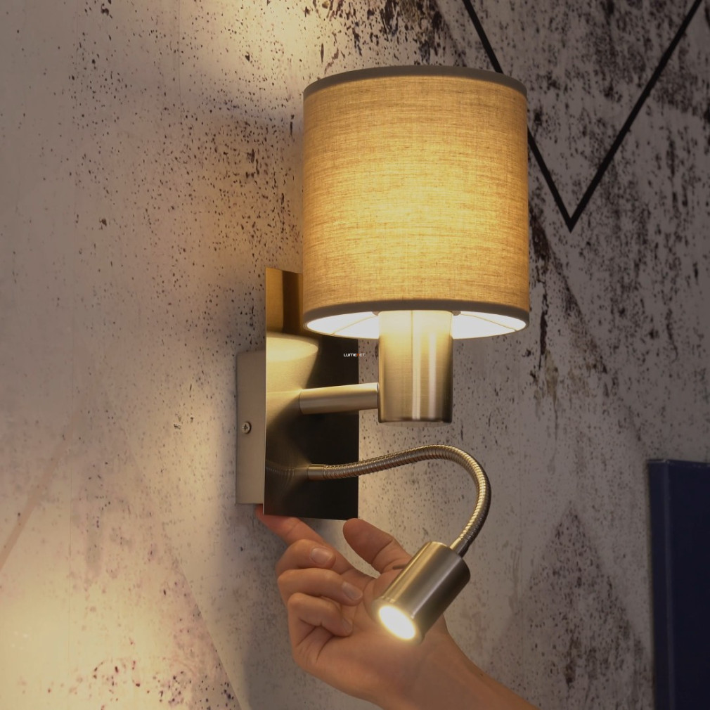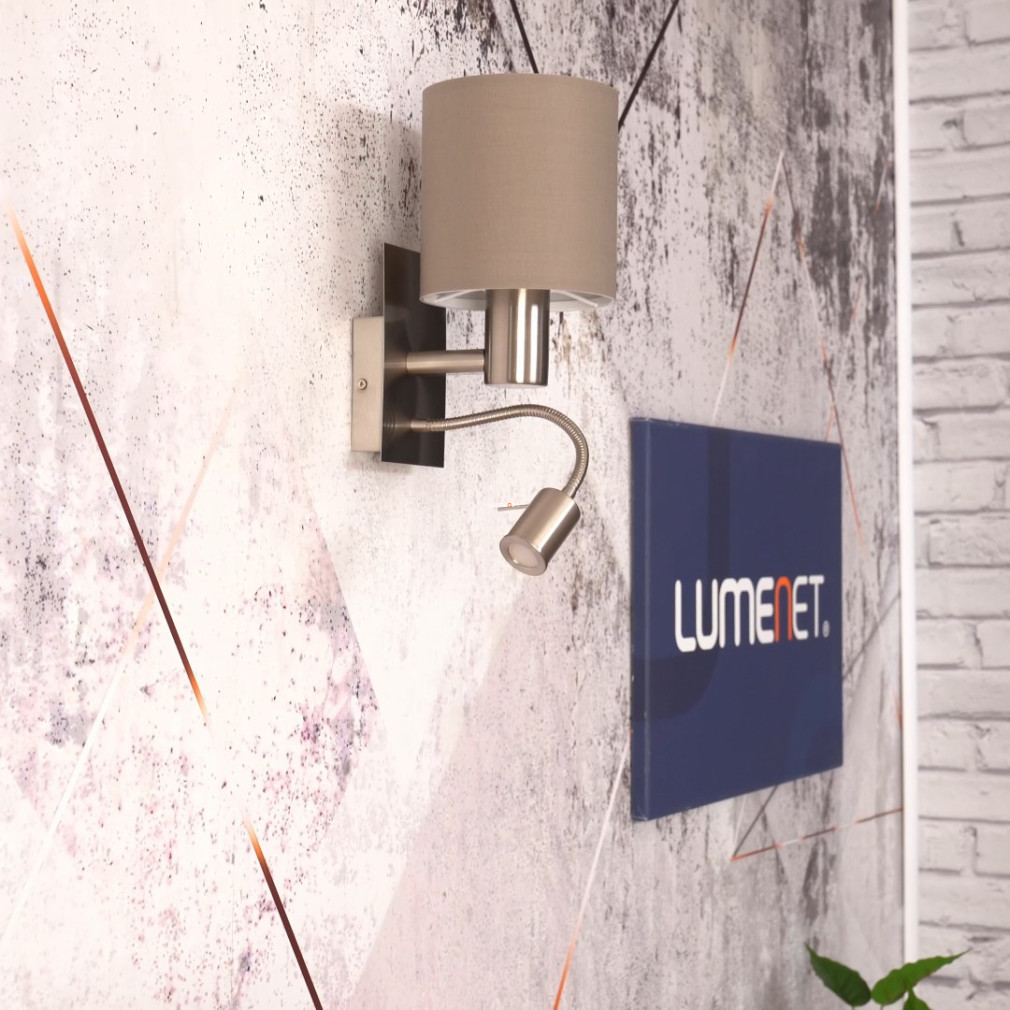 Lampa de perete Pasteri Eglo 96478 se potrivește în interioarele contemporane datorită designului său modern și culorii gri-nichel. Modulul LED încorporat de 3,5 W oferă o lumină albă caldă cu o temperatură de culoare de 3000 K și un flux luminos de 380 lumeni. Corpul lămpii este realizat dintr-o combinație de oțel și materiale textile, ceea ce îi conferă durabilitate și un aspect estetic. Clasa de protecție IP20 o face potrivită pentru utilizare în interior. Soluția cu comutator dublu permite controlul separat al sursei principale de lumină și al brațului de citit. Dimensiunile produsului sunt de 150 mm lungime și 380 mm înălțime, iar dimensiunile ambalajului sunt de 16x19x23 cm. Lampa cântărește 0,99 kg și este fabricată de EGLO.