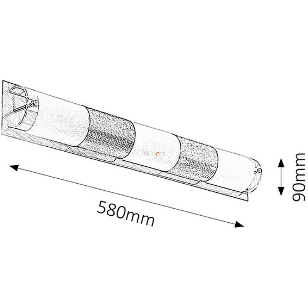 Lampa de perete Periodic Rábalux 5809 are trei socluri E14 care pot fi echipate cu surse de lumină înlocuibile. Lampa este proiectată într-un stil clasic, cu un cadru metalic cromat și abajur din sticlă opală. Dimensiunile produsului sunt: 90 mm lungime, 580 mm lățime și 90 mm înălțime, cu o greutate de 1,5 kg. Lampa nu include sursa de lumină; puterea, fluxul luminos și temperatura culorii depind de becul utilizat. Produsul are protecție IP20, fiind potrivit pentru utilizare în interior. Dimensiuni ambalaj: 12x12x61 cm. Periodic Rábalux 5809 este fabricat de Rábalux.
