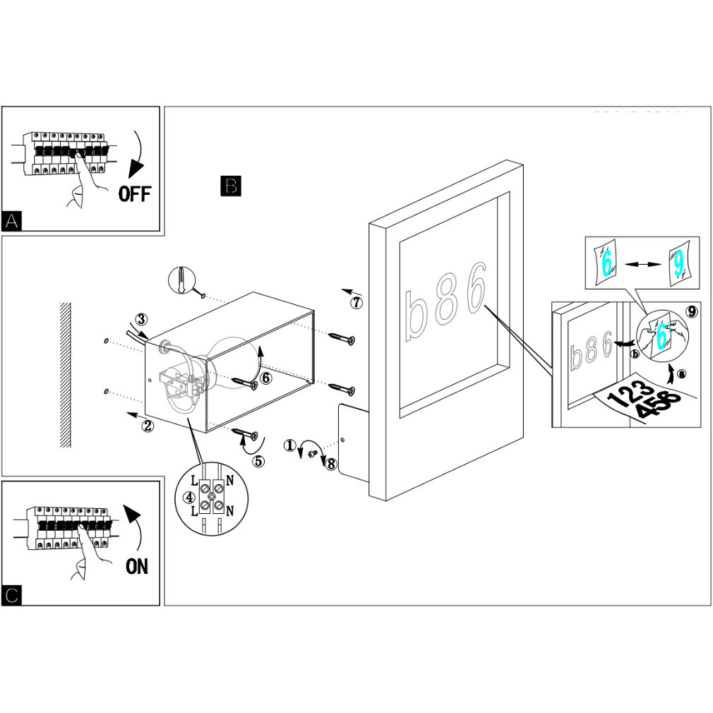 Lampă iluminată pentru exterior, pentru numărul casei