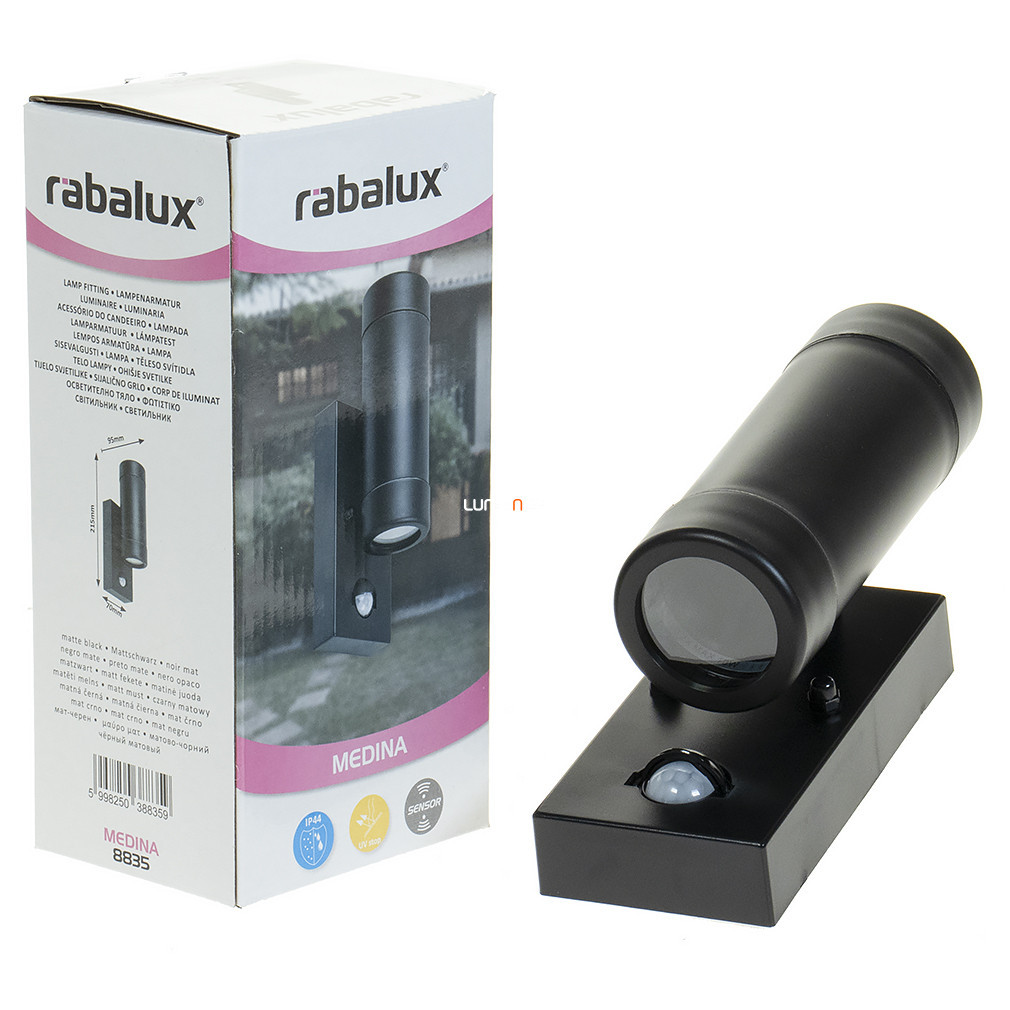 Aplică de exterior cu senzor de mișcare, iluminare sus/jos, 16 cm - Medina Rábalux 8835