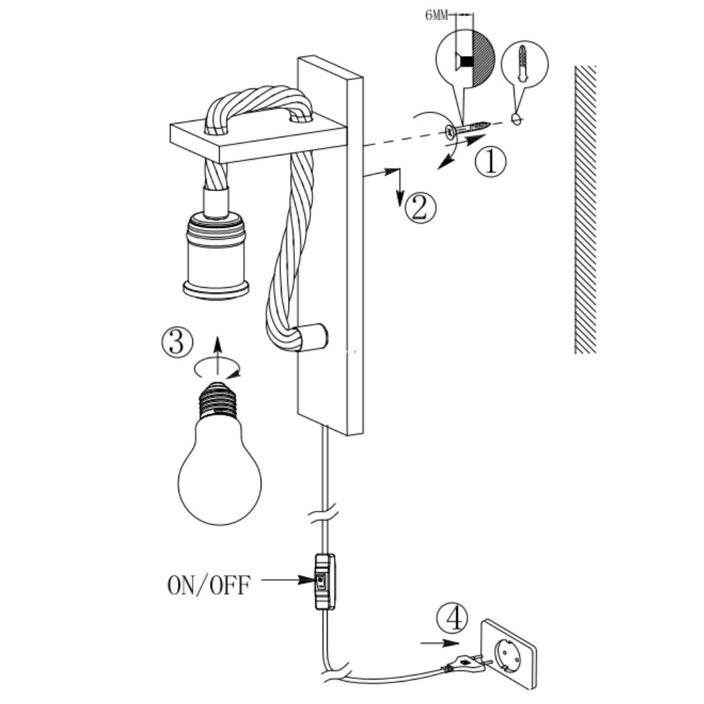 Lampa de perete Rampside Eglo 43197 este proiectată într-un stil rustic, combinând culorile maro, negru și lemn. Corpul lămpii este realizat din oțel, lemn și frânghie, conferindu-i un aspect unic. Are o priză E27, iar sursa de lumină este înlocuibilă, dar nu este inclusă. Lampa este acționată de un întrerupător cu cablu, nu este reglabilă, iar temperatura culorii și fluxul luminos depind de sursa de lumină utilizată. Dimensiuni: 135 mm lungime, 80 mm lățime, 300 mm înălțime. Are protecție IP20 și este potrivită pentru utilizare în interior. Produsul cântărește 0,79 kg, iar dimensiunile ambalajului sunt 15x9x32 cm. Producătorul este EGLO.