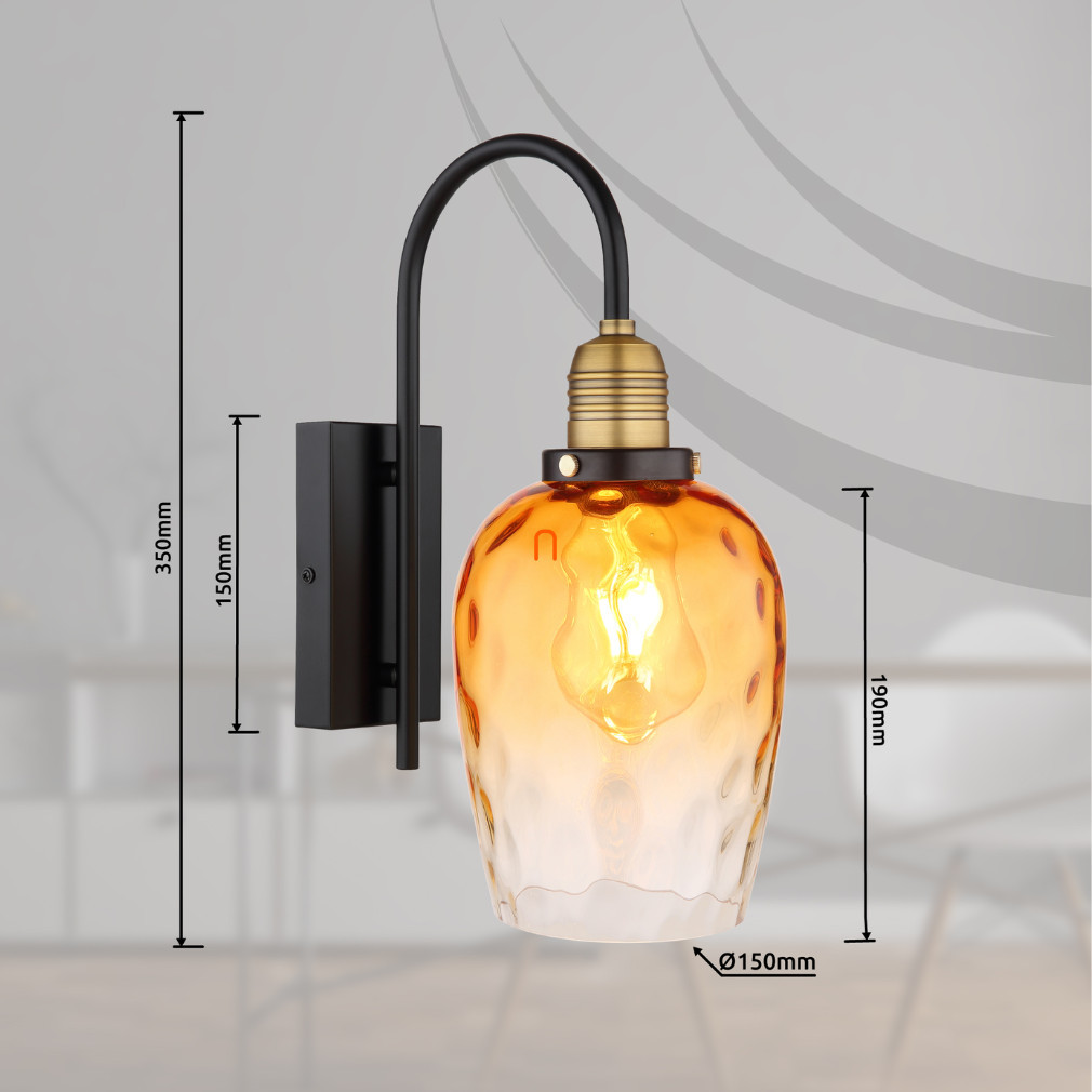Aplica Salvy Globo 15786W este realizată cu un abajur din sticlă de culoare chihlimbar și un cadru metalic negru mat, care îi conferă un aspect elegant în spațiile de locuit. Corpul de iluminat are o singură soclu E27, care poate fi utilizat cu o sursă de lumină înlocuibilă, astfel încât fluxul luminos, culoarea luminii și temperatura culorii pot fi reglate în funcție de necesități. Lampa de perete are o tensiune nominală de 230 V și un grad maxim de protecție IP20, fiind potrivită pentru utilizare în interior. Produsul cântărește 1,67 kg, are o lățime de 150 mm și o înălțime de 350 mm. Dimensiunile ambalajului sunt 26x43x21 cm. Corpul de iluminat nu include o sursă de lumină, care trebuie achiziționată separat. Producătorul este Globo.