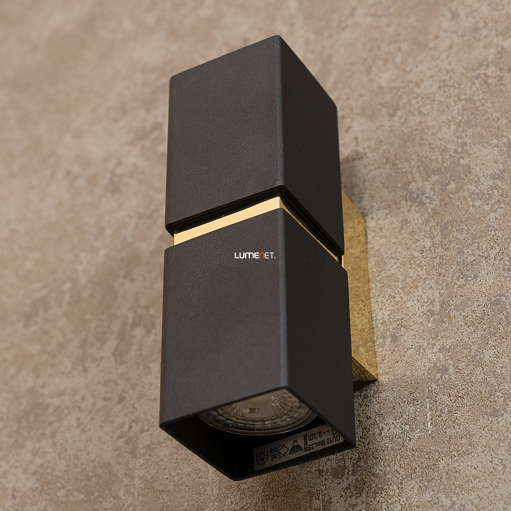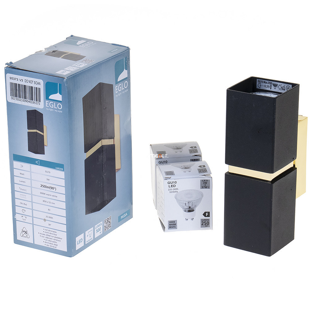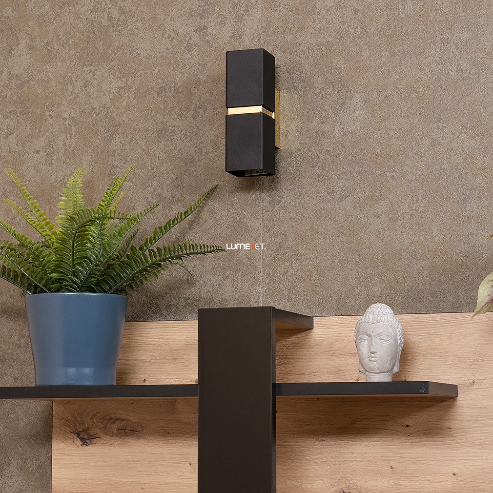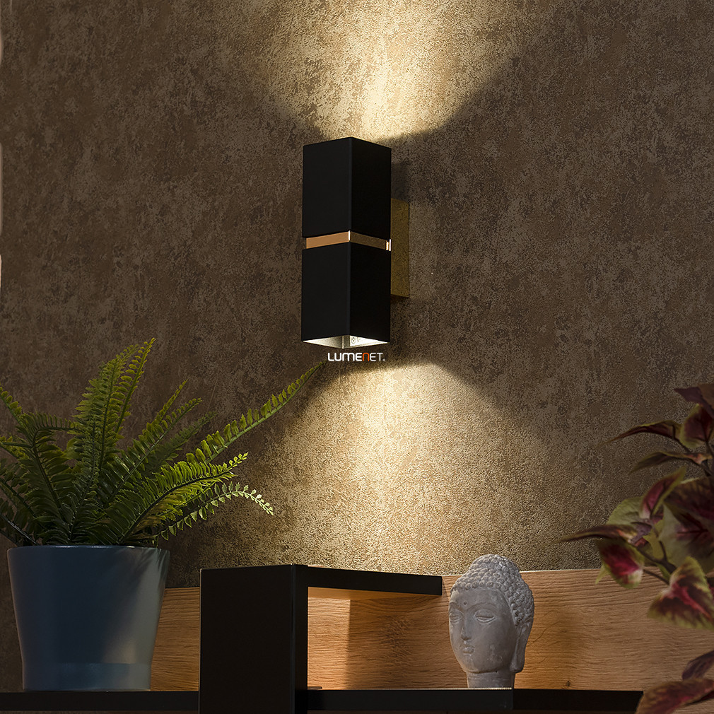 Lampa de perete Passa Eglo 95373, de culoare neagră, cu finisaj decorativ auriu, este o soluție modernă de iluminat pentru locuințe, cu două socluri GU10. Lampa este fabricată din oțel, cântărește 0,92 kg, are o lungime de 55 mm și o înălțime de 170 mm. Produsul are un grad de protecție IP20, fiind potrivit pentru utilizare în interior. Pachetul include surse de lumină înlocuibile, astfel încât fluxul luminos, culoarea luminii, puterea și temperatura culorii pot fi selectate în funcție de necesități. Culoarea neagră elegantă și finisajul auriu al lămpii ies în evidență în interioarele moderne, iar cele două socluri vă permit să obțineți luminozitatea potrivită. Produsul este fabricat de EGLO.