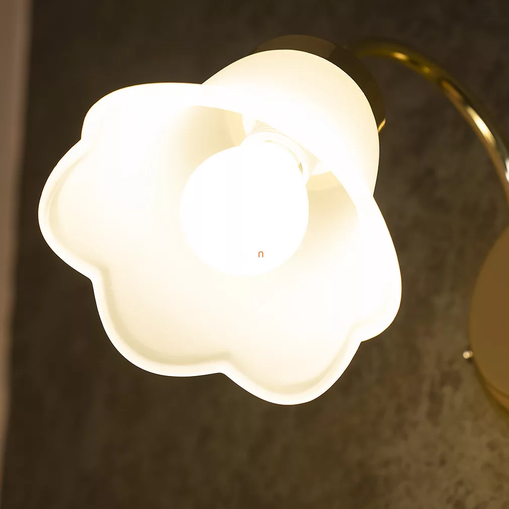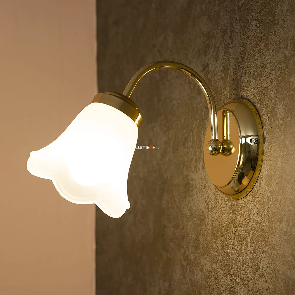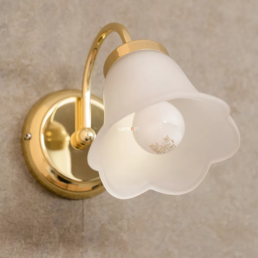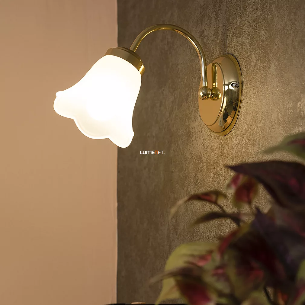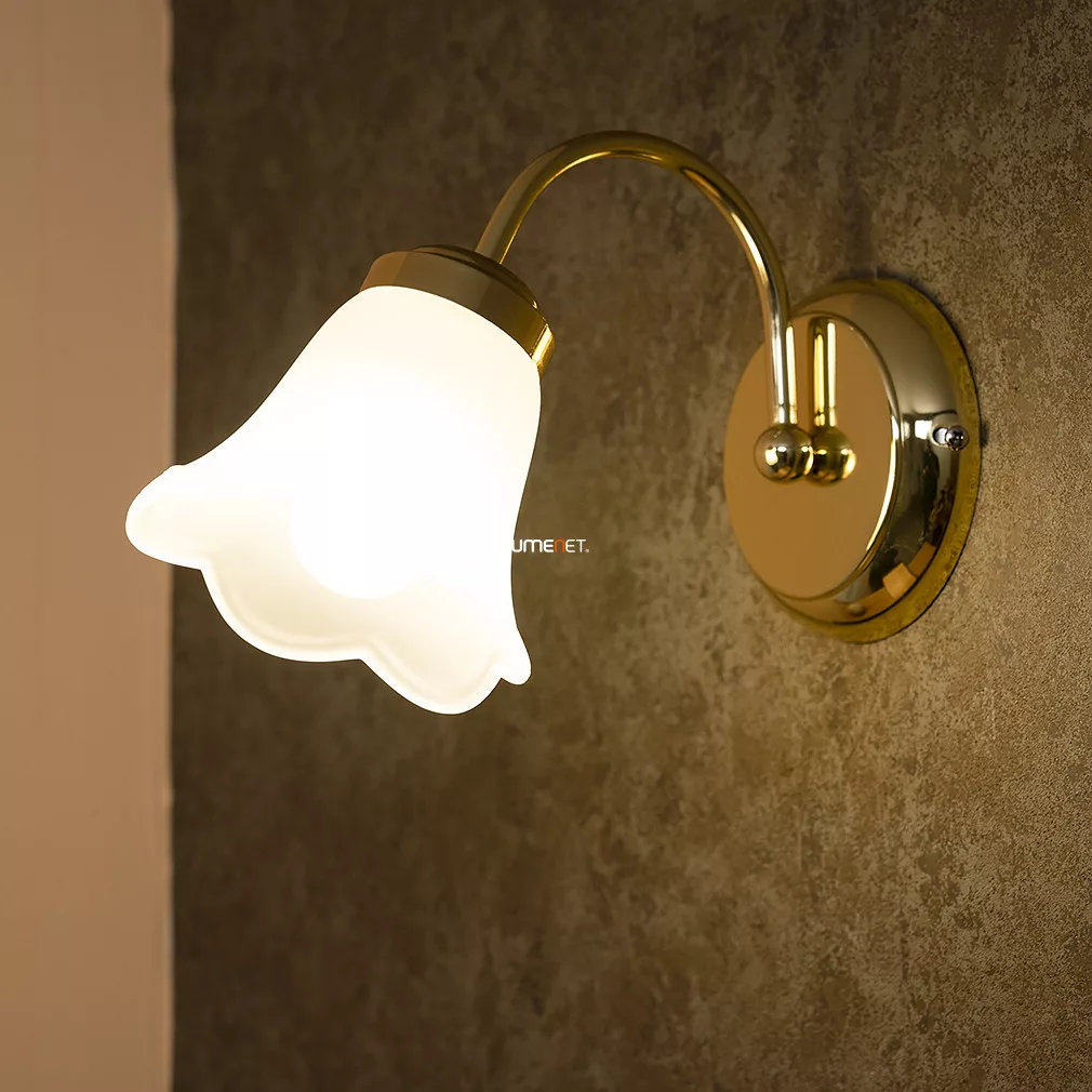 Aplica de perete Rafaella Rábalux 7231 în formă de floare, de culoare aurie, este o soluție de iluminat pentru locuință în stil clasic, realizată din metal și sticlă. Lampa are 1 soclu E14, care poate fi echipat cu o sursă de lumină înlocuibilă, dar sursa de lumină nu este inclusă în produs. Combinația de culori auriu și opal îi conferă un aspect elegant. Lampa are o lungime de 260 mm, o lățime de 130 mm și o înălțime de 200 mm. Produsul are protecție IP20, fiind potrivit pentru utilizare în interior, și nu are funcție de reglare a intensității luminoase. Ambalajul are o lățime de 17 cm, o lungime de 15 cm și o înălțime de 19 cm. Lampa cântărește 0,92 kg și este fabricată de Rábalux.