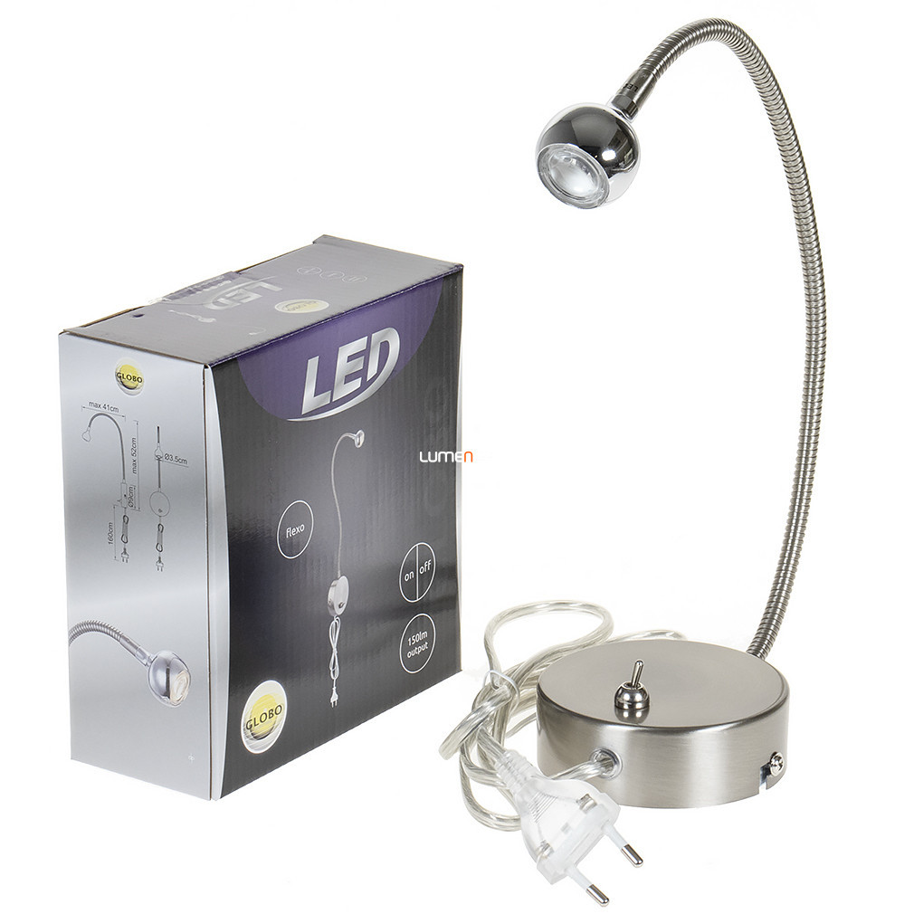 Aplica LED Serpent Globo 24109W cromată are un modul LED încorporat de 3 W care oferă un flux luminos de 150 lumeni cu o temperatură de culoare albă caldă de 3000 K. Corp de iluminat din metal în stil modern, disponibil în culoarea nichel. Aplica este echipată cu o conexiune la rețeaua electrică, poate fi controlată cu un întrerupător încorporat și nu este reglabilă. Produsul are un grad de protecție IP20, fiind potrivit pentru utilizare în interior. Are o lățime de 410 mm și o înălțime de 520 mm și cântărește 0,36 kg. Sursa de lumină LED inclusă în corp nu este înlocuibilă, iar ambalajul are dimensiunile 6 x 15 x 16 cm. Producătorul este Globo.