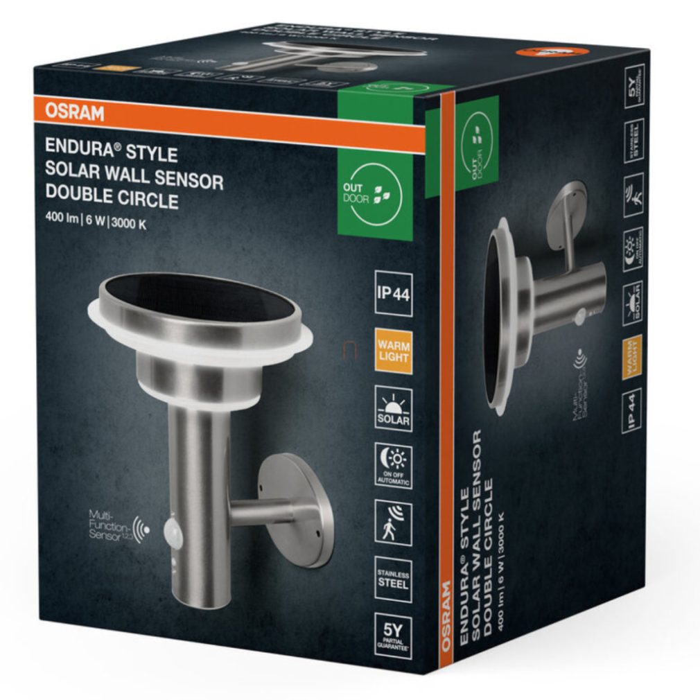 Aplică LED pentru exterior Osram cu senzor de lumină și mișcare, alb cald, 6 W (Endura Style Solar)