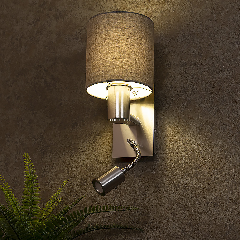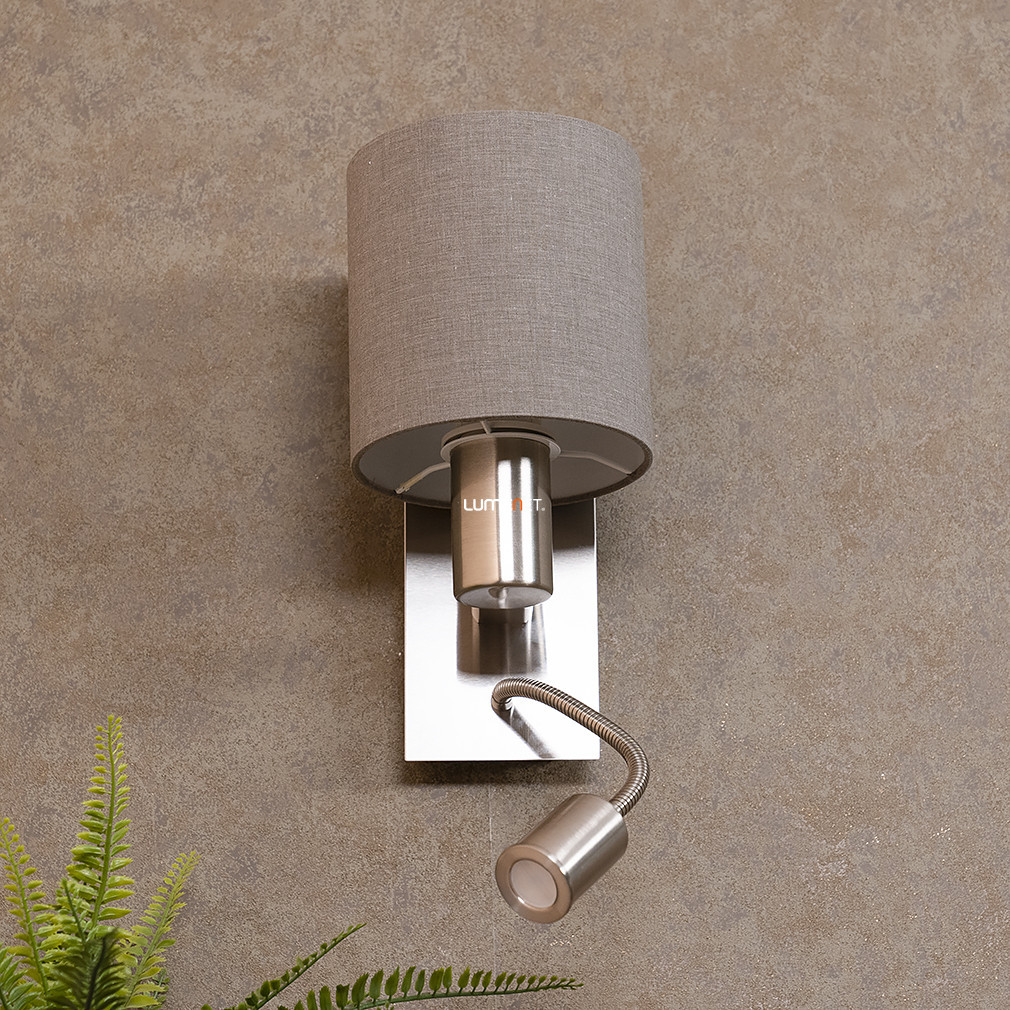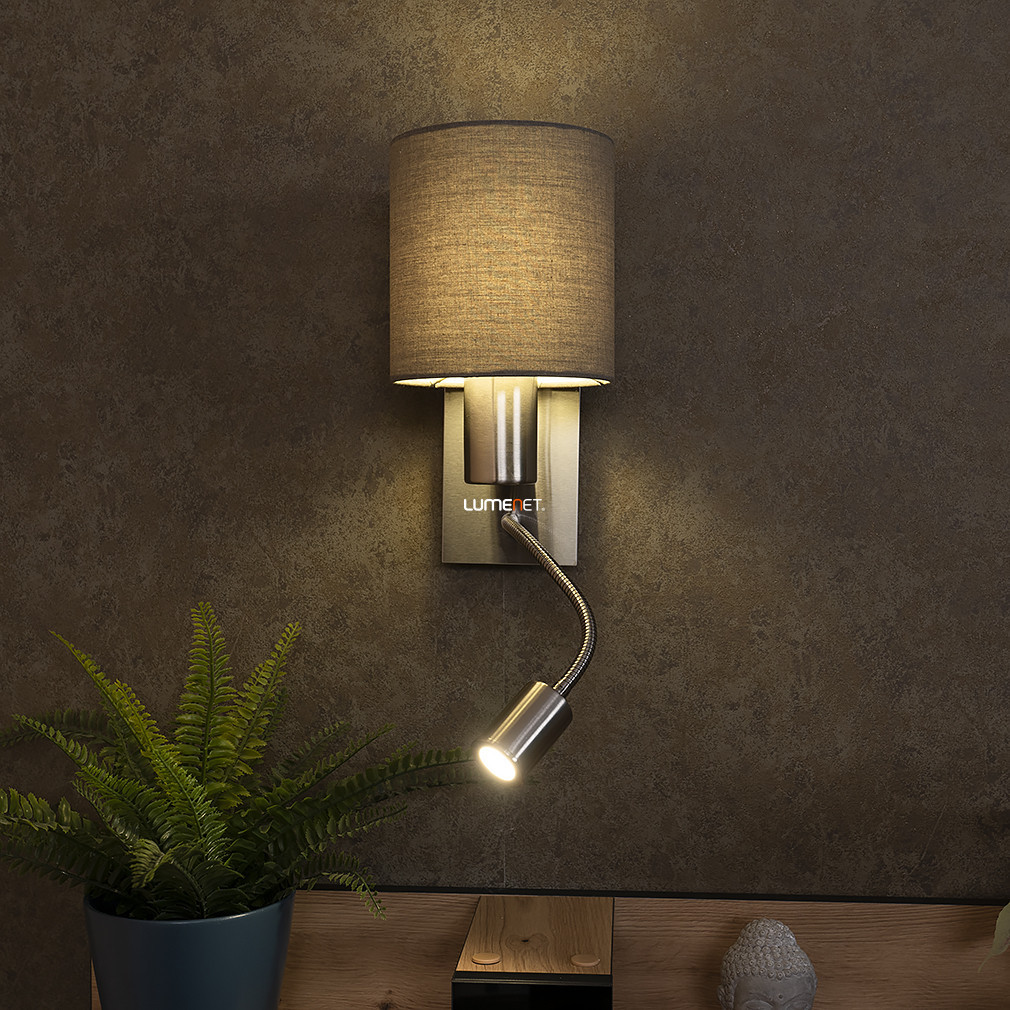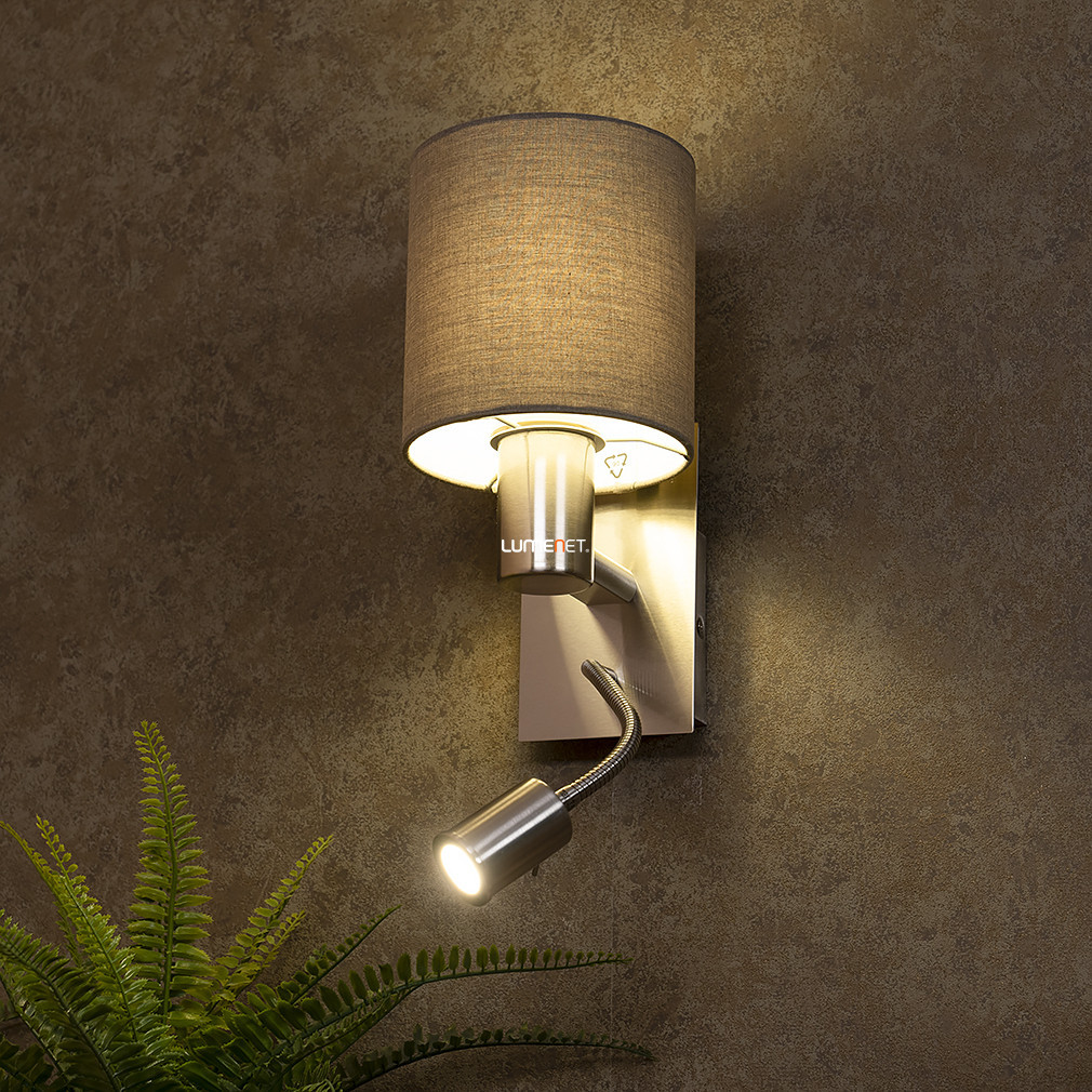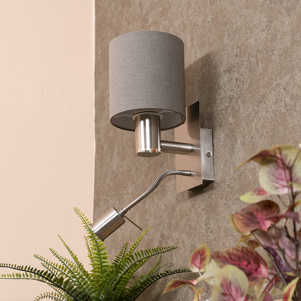 Lampa de perete din material textil Pasteri Eglo 96481 cu braț de citit cu LED este un corp de iluminat modern, caracterizat printr-o combinație de oțel și materiale textile. Lampa are un modul LED încorporat care oferă o putere de 3,5 wați și o putere luminoasă de 320 lumeni la o temperatură de culoare albă caldă de 3000 Kelvin. Comutatorul dublu permite controlul separat al sursei principale de lumină și al brațului de citit. Produsul are un grad de protecție IP20, fiind potrivit pentru utilizare în interior. Lampa este disponibilă în culorile nichel și gri, cântărește 1,03 kg și are o lungime de 150 mm și o înălțime de 380 mm. Dimensiunile ambalajului sunt 16 x 20 x 20 cm. Lampa este fabricată de EGLO, cod logistic 96481.