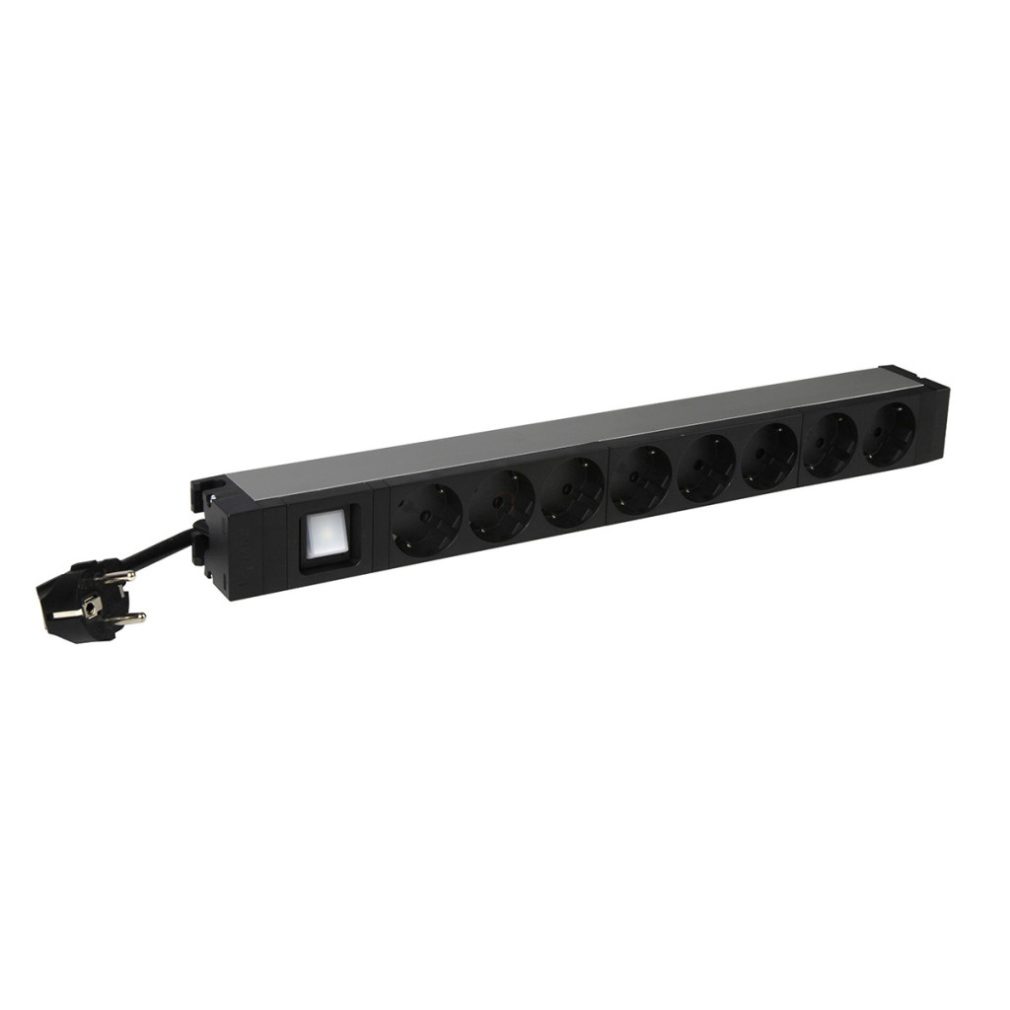 Leg. 646823 bandă de distribuție 19 coloane/1U cu comutator indicator de stare KIM:8xSCH protecție pentru copii, ALIMENTARE: uz casnic -2P+F 16A, 3 metri