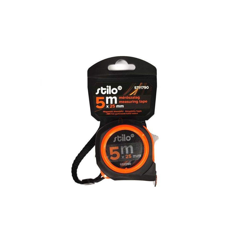 Bandă de măsurat Stilo 5 m x 25 mm, capăt magnetic, carcasă cauciucată, STI1790