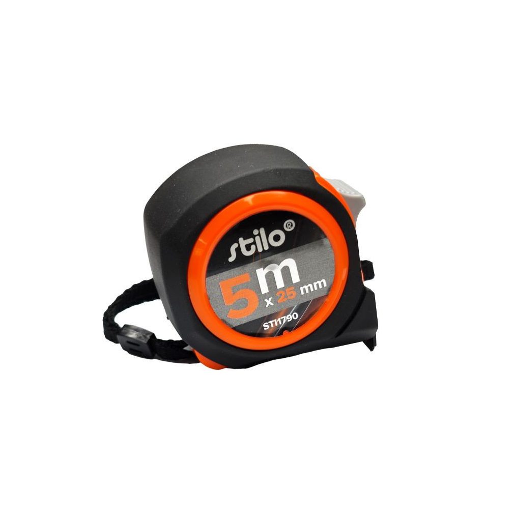Bandă de măsurat 5 m x 25 mm, capăt magnetic, carcasă cauciucată, Stilo STI1790