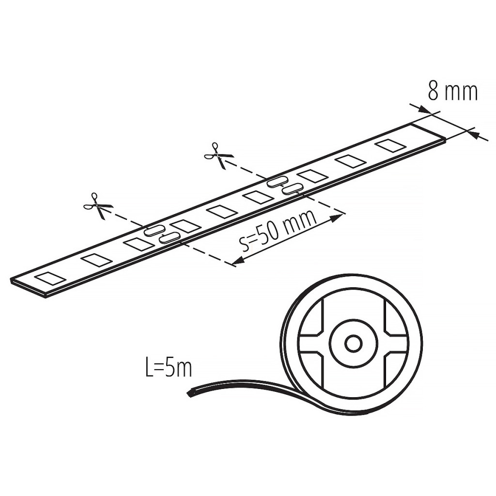 Bandă LED, alb cald, 12 V, 4,8 W/m, 450 lm/m, 5 metri