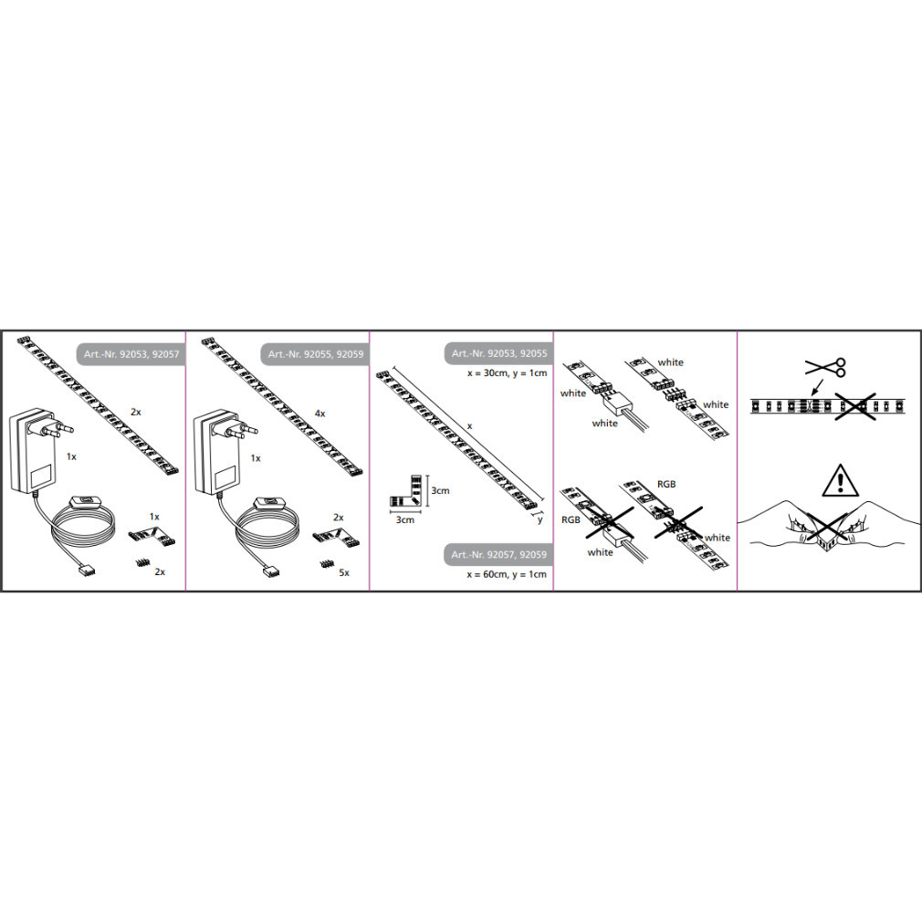 Bandă LED cu adaptor de alimentare, 2x30 cm, cu comutator între cabluri, alb rece - Benzi LED Eglo 92053