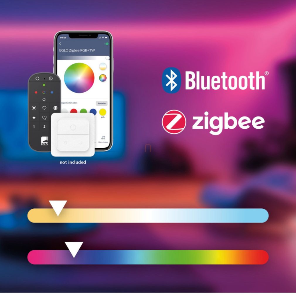 Bandă LED inteligentă, 3 m - Neon-Stripe-Z Eglo 901108, 2400 lm, 3000-6500 K+RGB, temperatură și culoare reglabile, controlabilă prin aplicație, Bluetooth, Zigbee, 20 W, 220-240 V