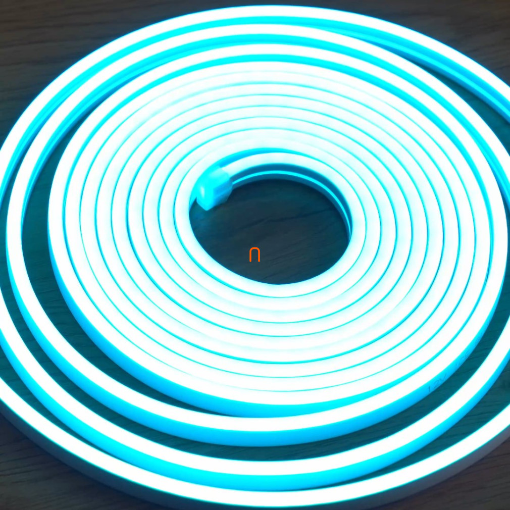 Bandă LED neon flexibilă albastru gheață, 5 m, IP65, 12 V CC, 6 W/fm, 300 lm/m, 120 LED/m, SMD2835 (DEL1646)