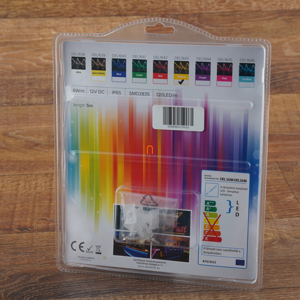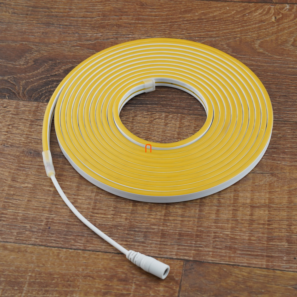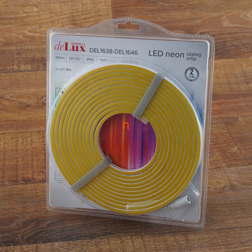DEL1643 Bandă LED neon flexibilă galbenă, 5 m, IP65, 12 V CC, 6 W/fm, 300 lm/m, 120 LED/m, SMD2835, deLux