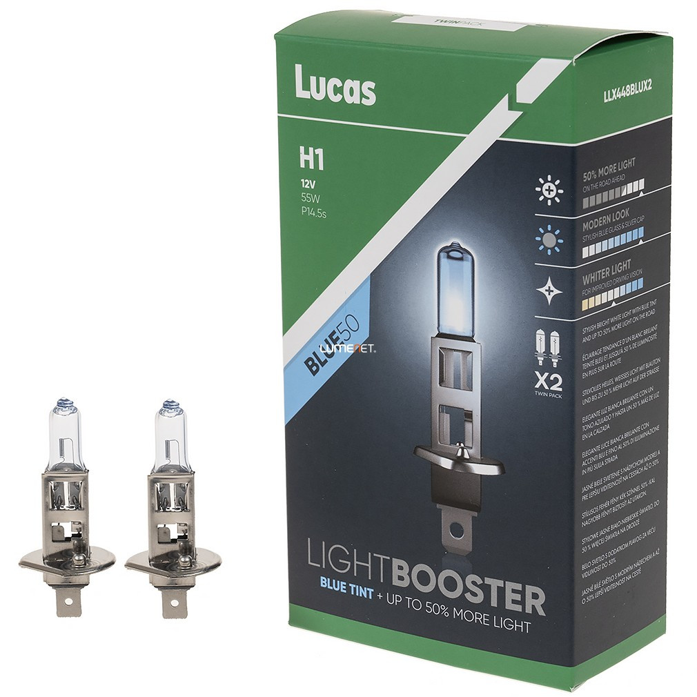 Bec auto Lucas LightBooster Blue H1 12V 55W, +50%, 2 bucăți/pachet
