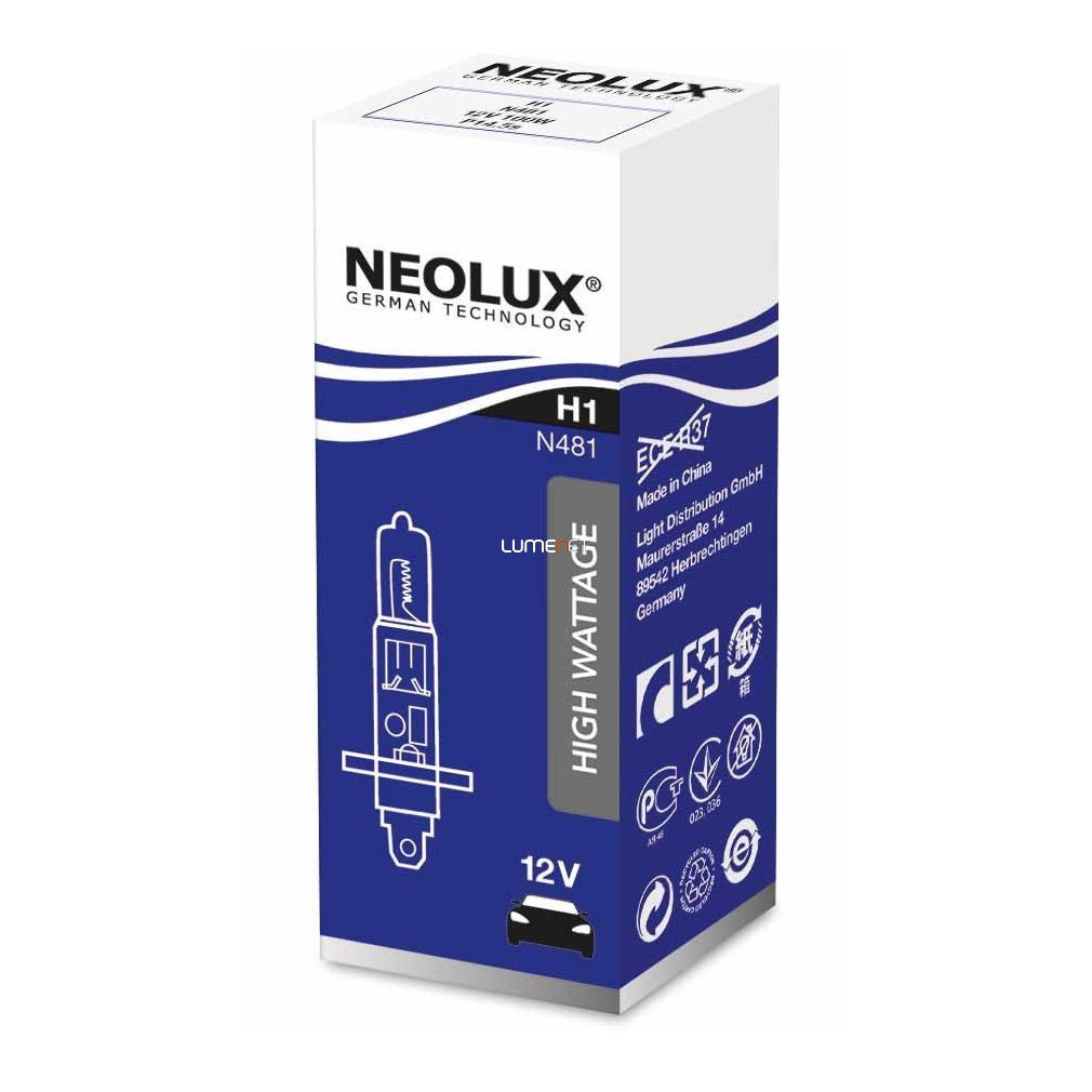 Bec halogen Neolux H1 pentru faruri off-road, 12 V, 100 W, 3200 K, 2600 lumeni, flux luminos extrem, N481, 1 buc./cutie