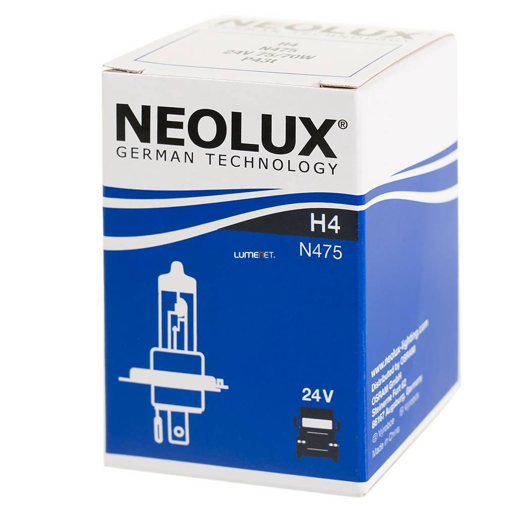 Bec halogen Neolux H4 pentru faruri, 24 V, 75/70 W, P43t, pentru camioane, N475, 1 buc./cutie