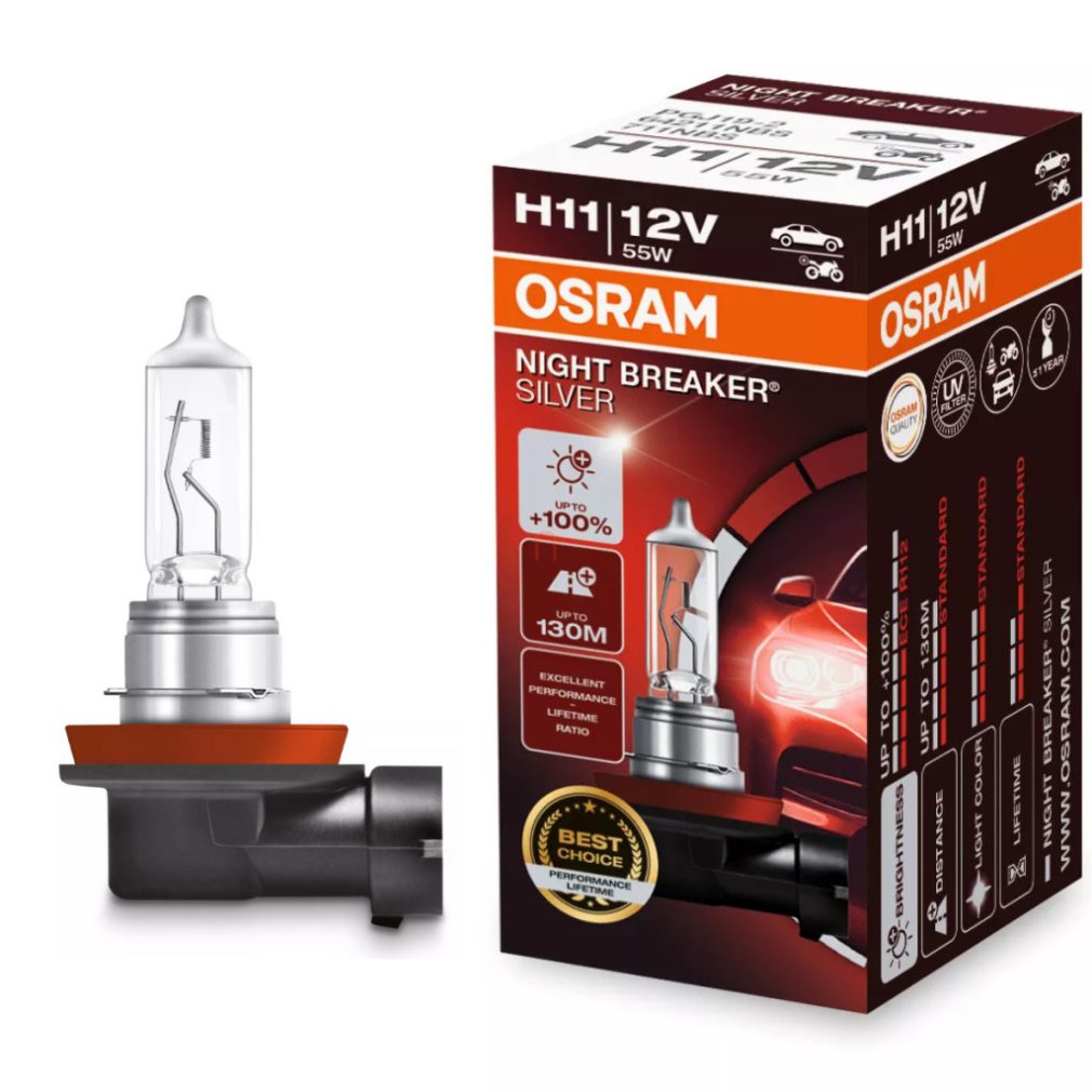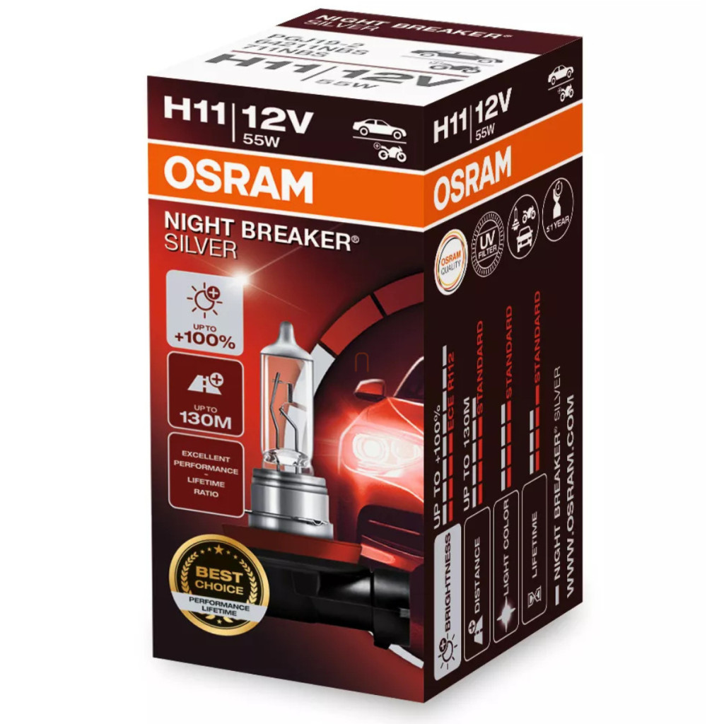Seria Osram Night Breaker Silver este o combinație între două familii de becuri pentru faruri de succes: Silverstar 2.0 cu durată lungă de viață și Night Breaker Laser Unlimited cu proprietăți de iluminare excepționale. Noua familie Night Breaker Silver combină raportul excelent preț/performanță al Silverstar 2.0 cu caracteristicile de iluminare remarcabile ale becurilor Unlimited. Seria Night Breaker Silver oferă cu 100% mai multă lumină în zona critică (50-75 de metri de mașină) decât un bec halogen standard și are o durată de viață medie de 400-450 de ore conform Tc (calculată la o viteză medie de 50 km/h: 20.000 - 22.500 kilometri parcurși cu farurile aprinse), ceea ce este extrem de bun în rândul becurilor de intensitate mare.