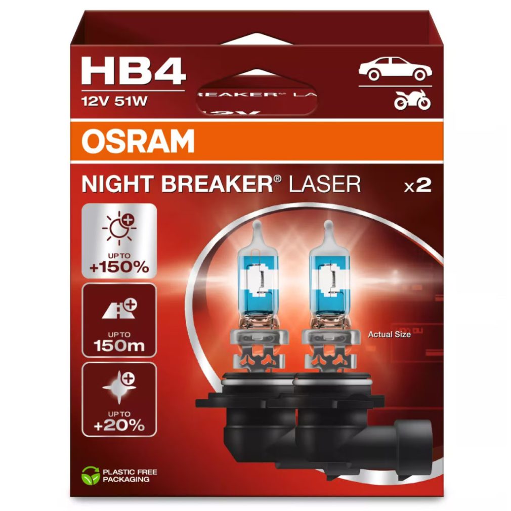 Născut din competiția dintre cei mai mari producători, conceput pentru cele mai întunecate momente. Osram Night Breaker Laser gen2 va fi suficient de luminos pentru a asigura o conducere sigură pe timp de noapte în toate condițiile de drum. Produsele Night Breaker Laser 150% Next Generation au cele mai puternice caracteristici de iluminare. Datorită tehnologiei laser inovatoare, obținem o imagine de iluminare mai precisă pe drumul din față. Conform datelor producătorului, noile becuri Night Breaker Laser +150% Next Generation sunt cu 150% mai luminoase decât becurile halogene standard. Valorile remarcabile de iluminare se datorează în mare parte soluțiilor tehnologice de fabricație reînnoite. În plus față de luminozitatea crescută, temperatura culorii s-a îmbunătățit, de asemenea, în comparație cu halogenele standard, cu o lumină cu 20% mai albă atunci când se utilizează noile becuri. Putem spune că sună bine și, mai important, va arăta bine. Capacele lămpilor au fost colorate conform unui model special și precis pentru a obține cea mai bună luminozitate și temperatură de culoare posibilă. Deși noua familie Laser Gen2 nu va fi încă vizibilă din spațiu, ea va oferi cea mai bună performanță posibilă pe șosea pentru fanii becurilor premium. Toate produsele din această familie sunt omologate ECE și pot fi utilizate în traficul rutier. Se preconizează că cel mai recent bec Laser Gen2 150% HB4 din seria de succes Osram Night Breaker, cu o durată de viață nominală Tc de 500 de ore, va avea mai mult succes decât oricare dintre predecesorii săi. Conform datelor producătorului, mașinile echipate cu becuri Night Breaker Laser 150% Next Generation au faruri care luminează cu până la 150 de metri mai departe decât cele echipate cu becuri standard, sporind vizibilitatea obiectelor îndepărtate. Dacă inversăm ecuația, șoferii care vin din sens opus ne vor observa mult mai devreme, ceea ce reprezintă, de asemenea, un avantaj și o caracteristică de siguranță pentru noi. În funcție de far, tipurile Night Breaker Laser 150% Gen2 cu o temperatură de culoare de 3500-4000K sunt suficient de albe pentru a oferi un contrast mai mare decât omoloagele lor standard și se remarcă mai bine în trafic, sporind siguranța. Cei care aleg familia Osram Night Breaker Laser 150% Gen2 se pot simți mai în siguranță atunci când conduc noaptea.