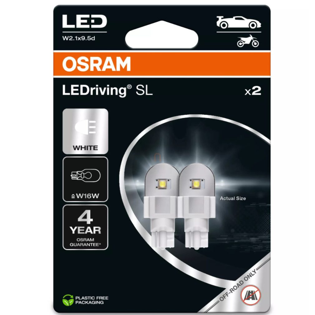 Bec LED indicator OSRAM LEDriving SL W16W alb rece, soluție plug & play, 6000 K, 280 lumeni, 12 V, 921DWP-2BL