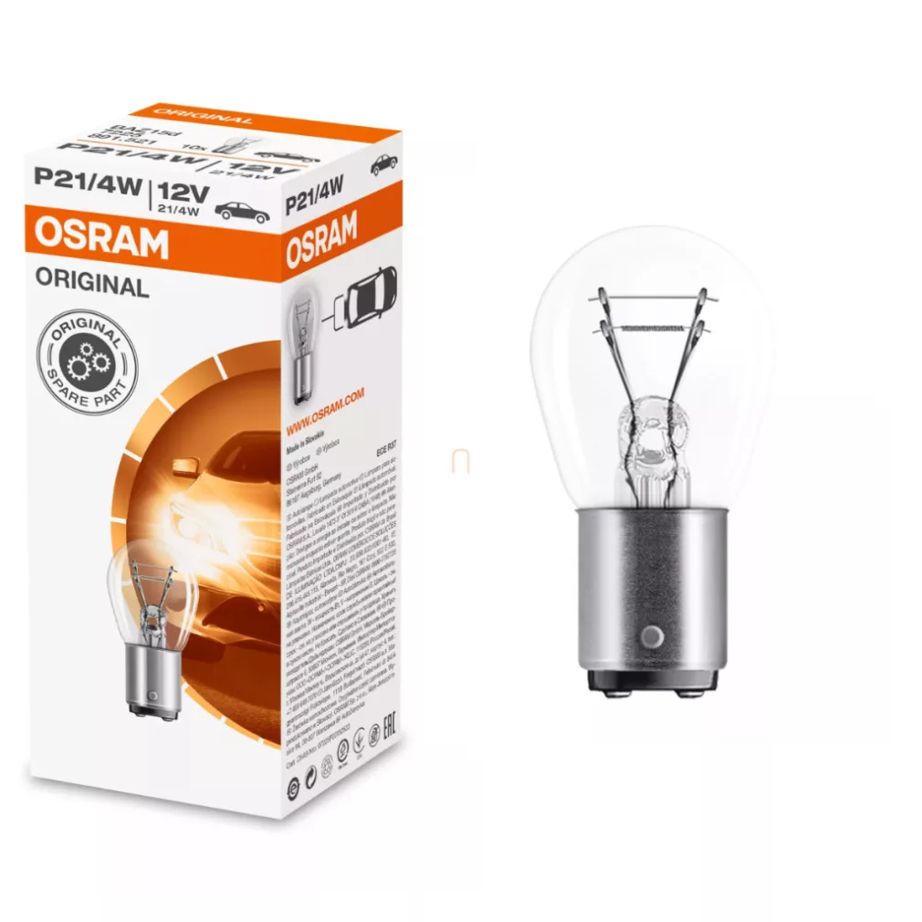 Bec indicator Osram Original Line 12V P21/5W, 21/5 W, soclu BAY15d, putere luminoasă principală 440 lm, lumină auxiliară 35 lm, durată lungă de viață, 7528-2BL, 2 buc./ambalaj blister