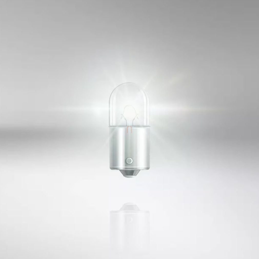Bec standard R10W de calitate Osram, vândut în pachete de două bucăți. Prețul afișat este pentru două becuri.