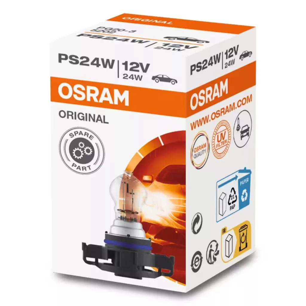 Bec indicator Osram Original Line PS24W, 12 V, 24 W, flux luminos de 500 lumeni, soclu baionetă PG20-3, luminozitate ridicată, bec indicator cu durată lungă de viață, 5202, 1 buc./cutie