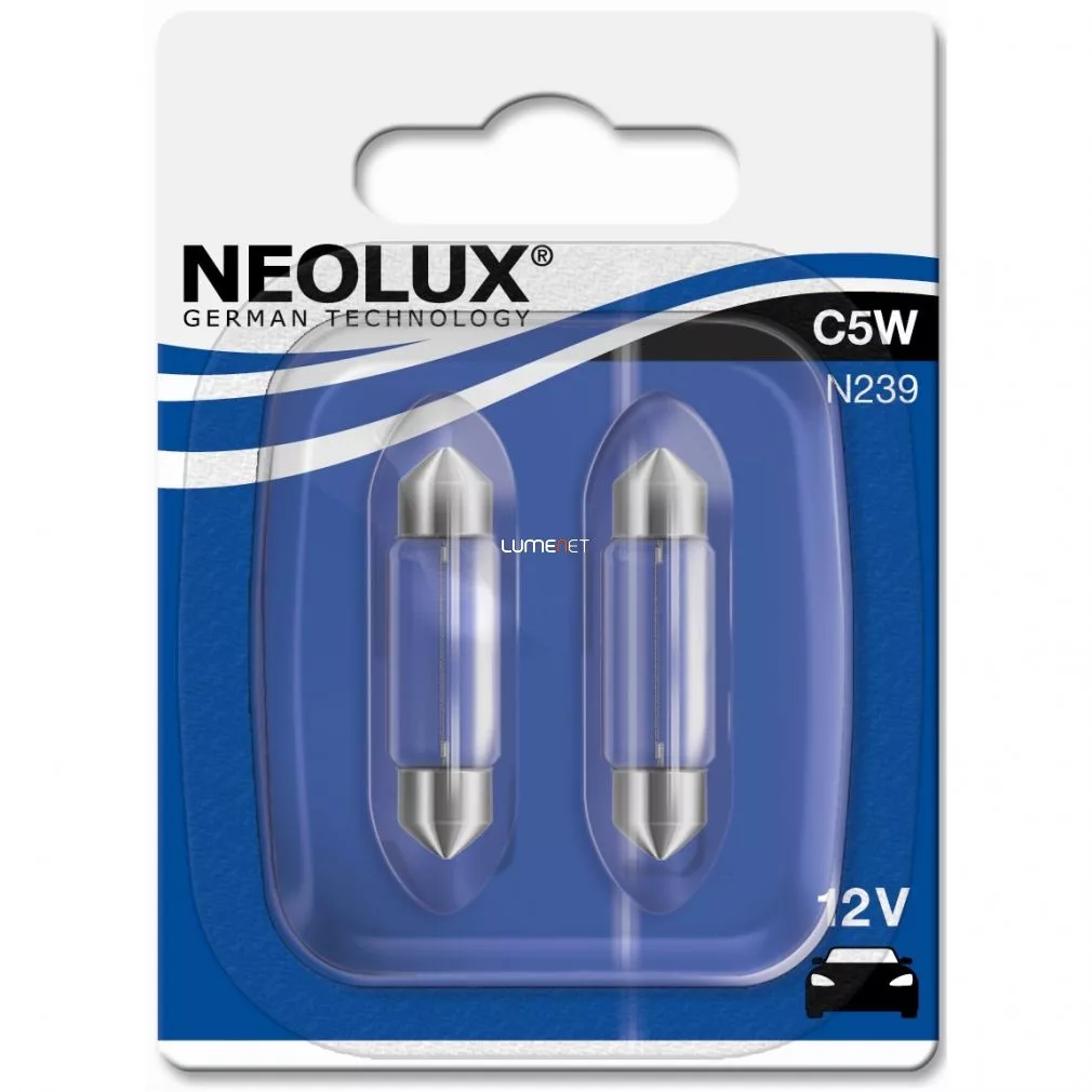 Bec Neolux pentru tavan, 12 V, 36 mm, pentru semnalizare și iluminat interior, 5 W SV8.5-8, tip C5W, sursă de lumină fiabilă, N239-02B, 2 bucăți/ambalaj blister