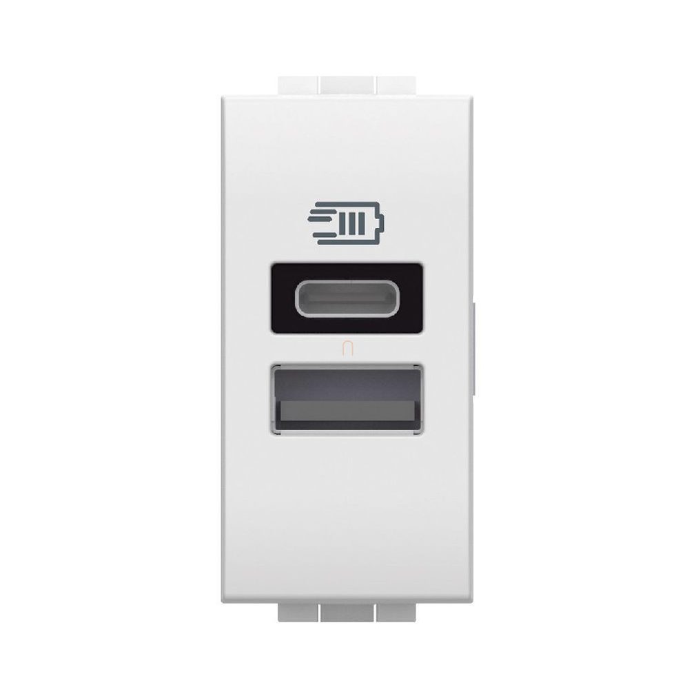 BTICINO N4191AC Livinglight încărcător dual USB A/C 5VDC 3000/1500mA 1M alb