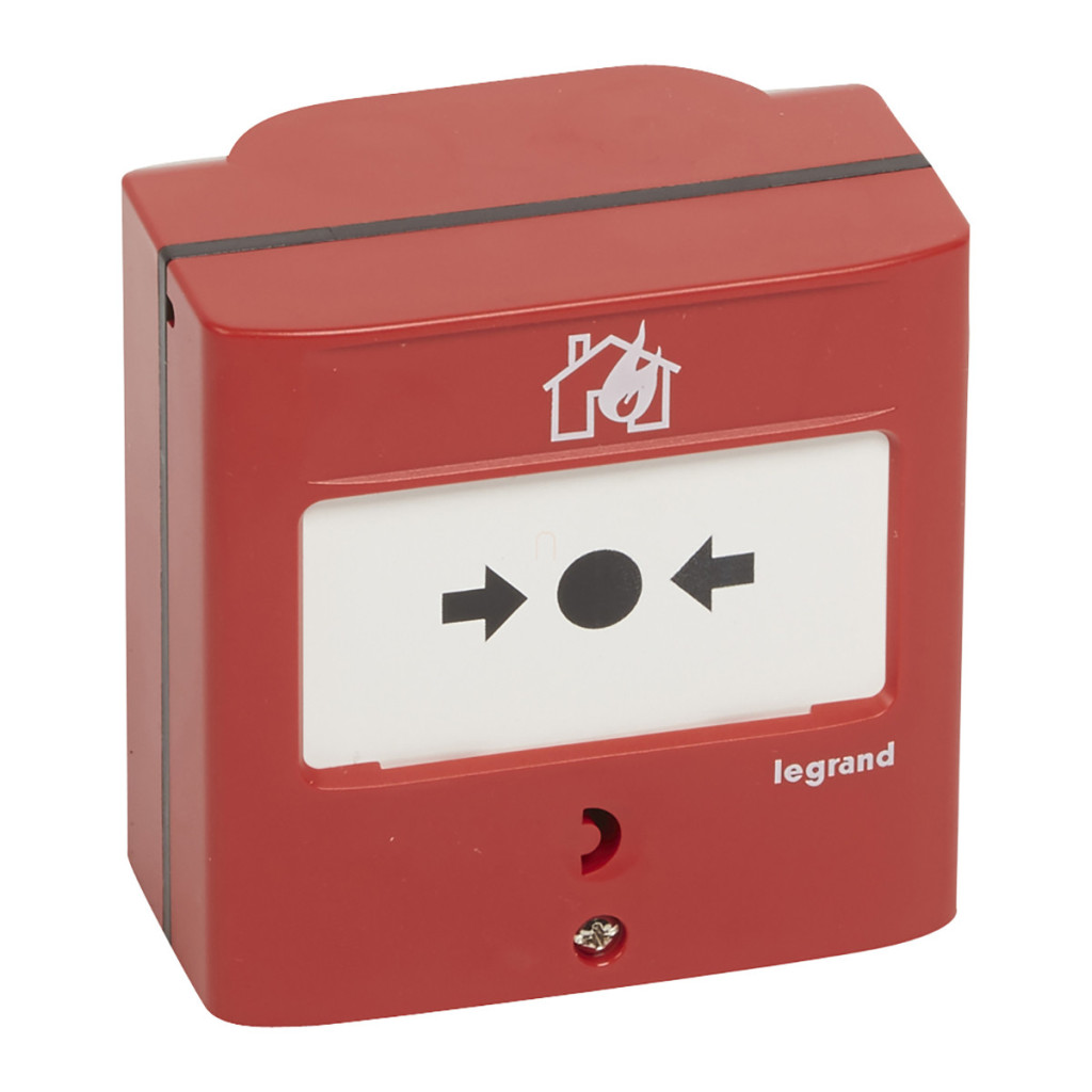 Buton manual LeGrand pentru sisteme de detectare și alarmare incendiu, cu acțiune simplă, roșu RAL 3000, cu 2 contacte de comutare - 5A-24V=, IP30-IK07 - 138068