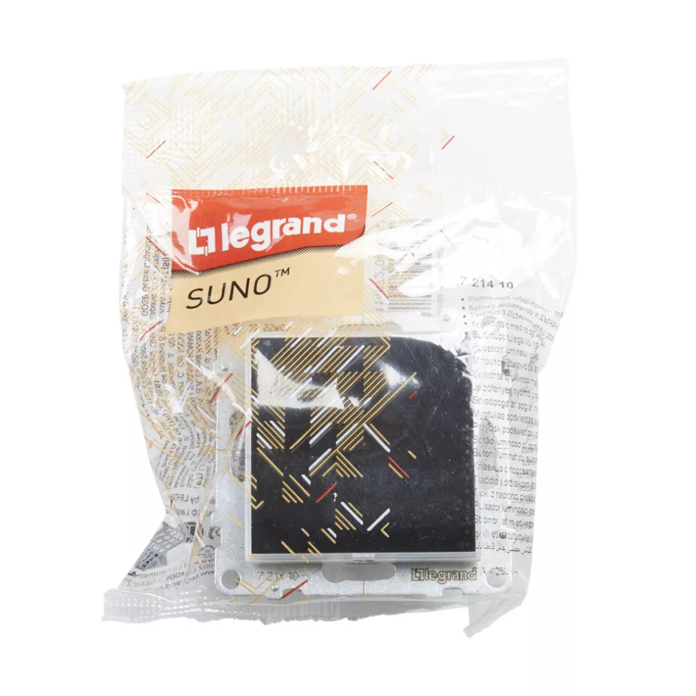 Buton unipolar Legrand Suno cu indicator luminos, suport pentru etichetă, negru - 721410