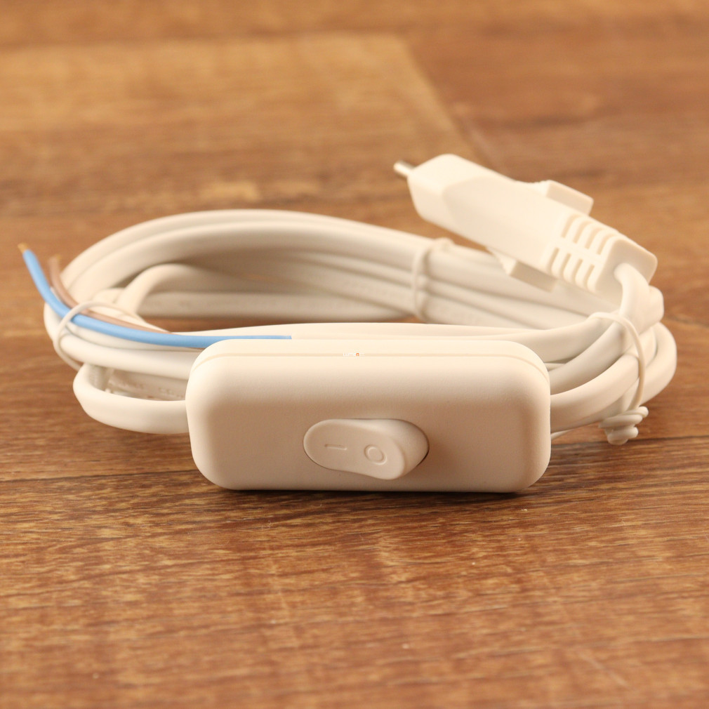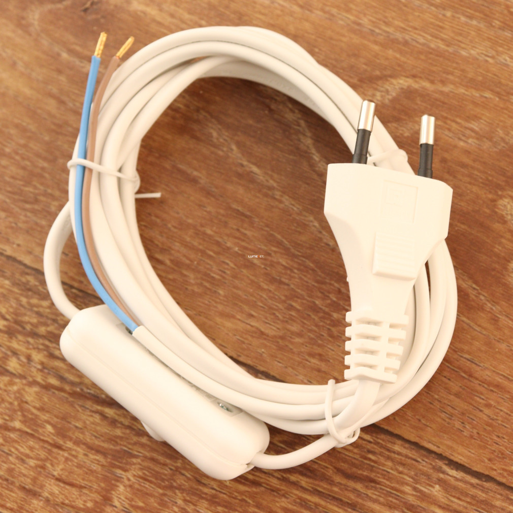 Cablul cu mufă GAO cu mufă, comutator, cablu 2x0,75 mm² 1,5 m, 250 V, 2,5 A, IP20 6781H este un conector flexibil pentru cabluri albe, recomandat pentru aparate electrocasnice mici și aparate DIY, echipat cu o mufă.