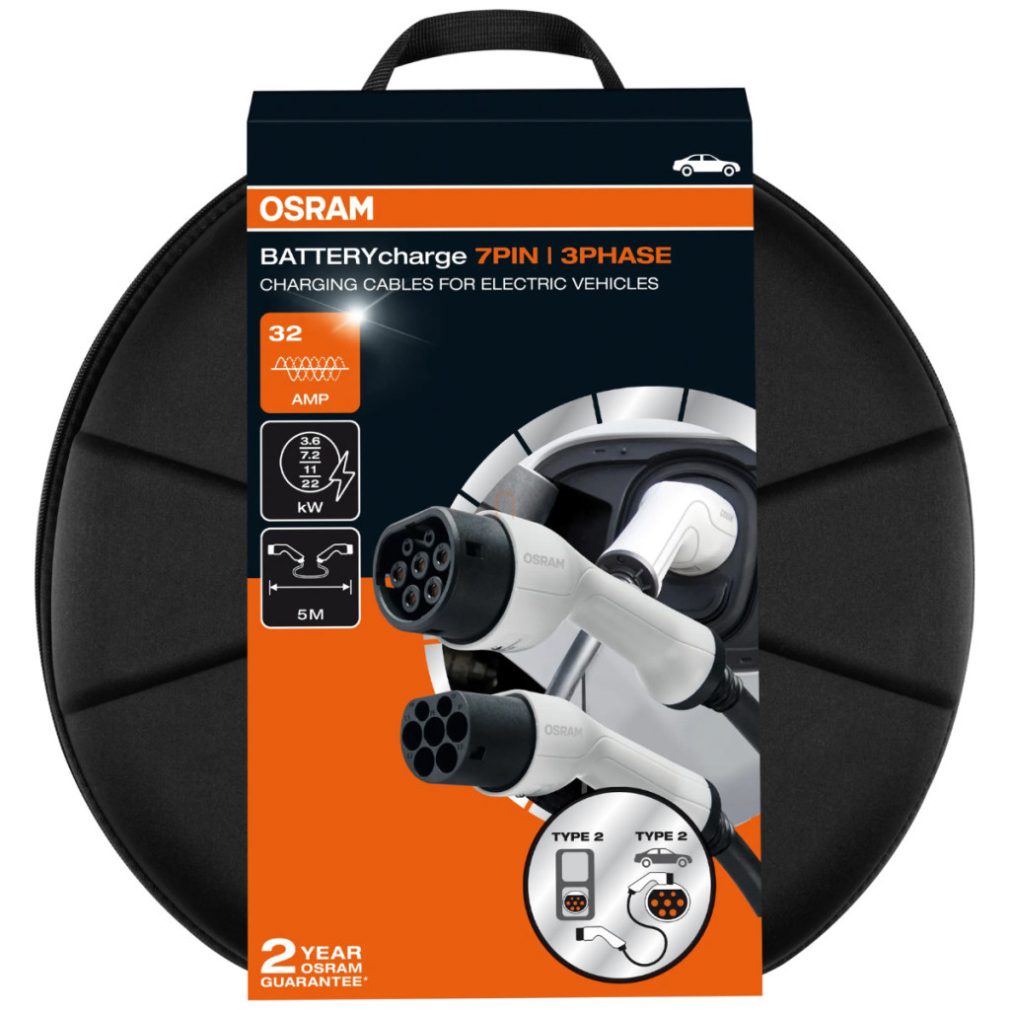 Cablu de încărcare portabil Osram BatteryCharge pentru vehicule electrice și hibride plug-in, 7 pini, conexiune tip 2, 6/10/16 A, 240 V, protecție IP65/IK10, lungime 5 metri, OPC20A05