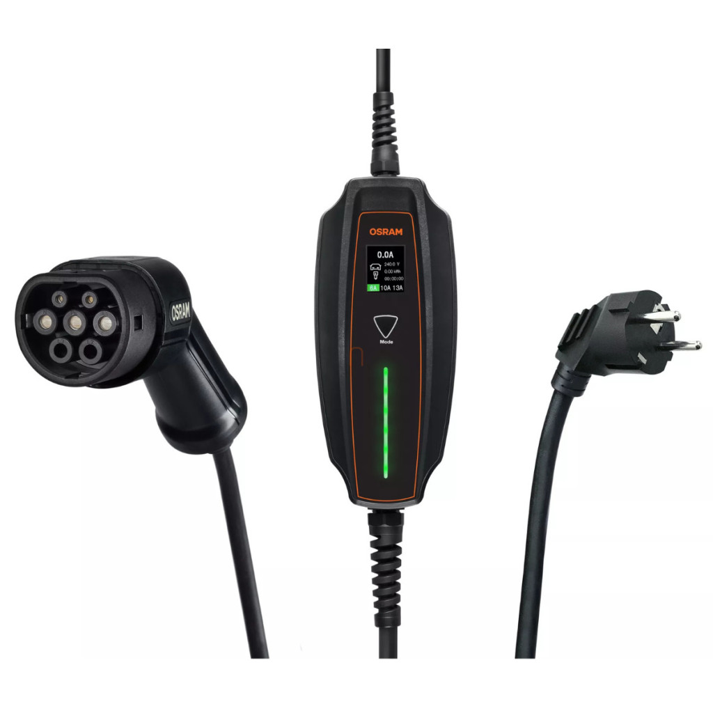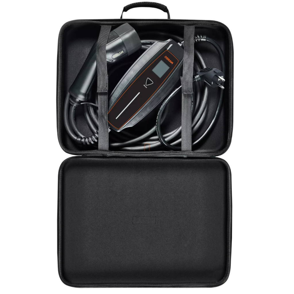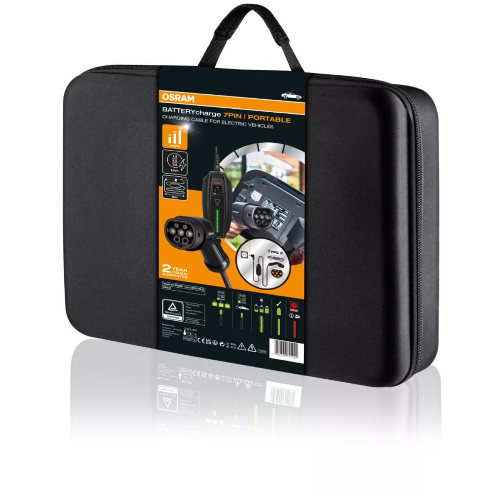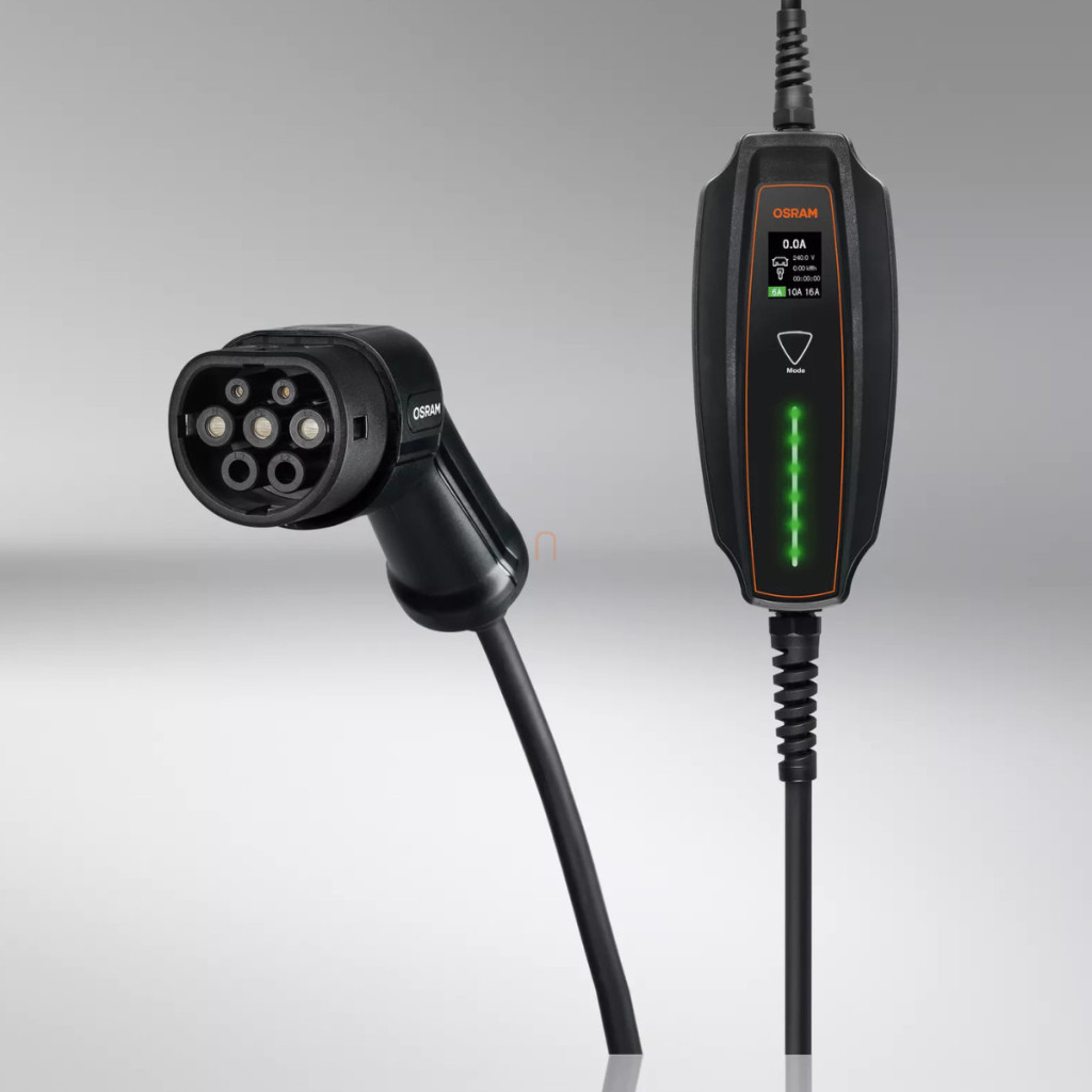 Alegeți un cablu de încărcare de înaltă calitate pentru mașina dvs. electrică: modelul Osram BATTERYcharge a fost special conceput pentru a oferi aceleași caracteristici ca și cablurile din fabrică, dar la un preț mai accesibil. În timpul funcționării, acesta afișează nivelul de încărcare și alte informații utile, de la curent și putere până la timpul scurs de la începerea încărcării. Mai mult, puteți chiar modifica viteza de încărcare folosind butoanele de control de pe cablu. Puteți încărca vehiculul cu o putere maximă de 3,6 kW și un curent de 16 A. Cablul de încărcare are o lungime de 5 metri, este fabricat dintr-un material durabil și are un mâner ergonomic. Poate fi depozitat comod în portbagaj, deoarece producătorul include și o husă din țesătură.