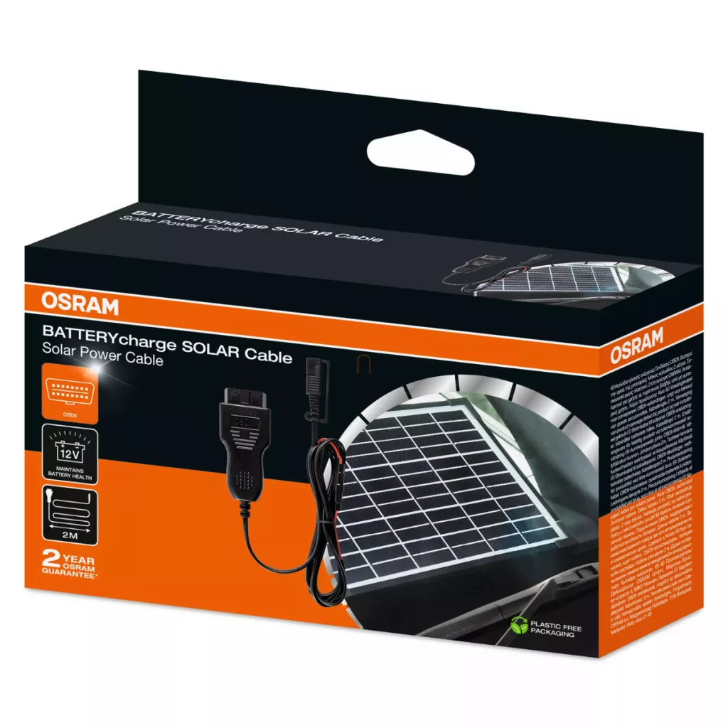 Cablul OSRAM BATTERYcharge SOLAR (OSPOBD) este un accesoriu practic pentru cei care utilizează dispozitivele de întreținere a bateriilor solare OSP500, OSP1000 sau OSP2000 și doresc să le conecteze mai ușor și mai rapid la bateria vehiculului lor. Acest cablu de 2 metri lungime vă permite să accesați bateria direct prin conectorul OBDII al vehiculului, ocolind priza tradițională de 12 V pentru brichetă sau conexiunea cu clemă de baterie.