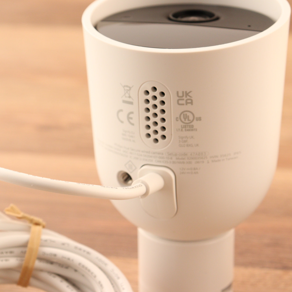 Ambalajul acestei camere Hue cu fir include nu numai un suport de perete, ci și un suport de masă. Acest lucru vă permite să o utilizați confortabil atât în interior, cât și în exterior. Indiferent unde o montați, conexiunea magnetică vă permite să reglați liber unghiul de vizualizare al camerei, asigurându-vă că nu veți pierde nimic. Cu protecție IP65, poate fi utilizată atât în interior, cât și în exterior. Această versiune poate fi alimentată de la rețeaua electrică.