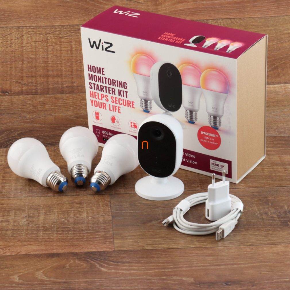 Cameră inteligentă WiZ pentru interior cu 3 surse de lumină inteligente reglabile, 2200-6500 K, care înlocuiește un bec de 60 W (RGBW)
