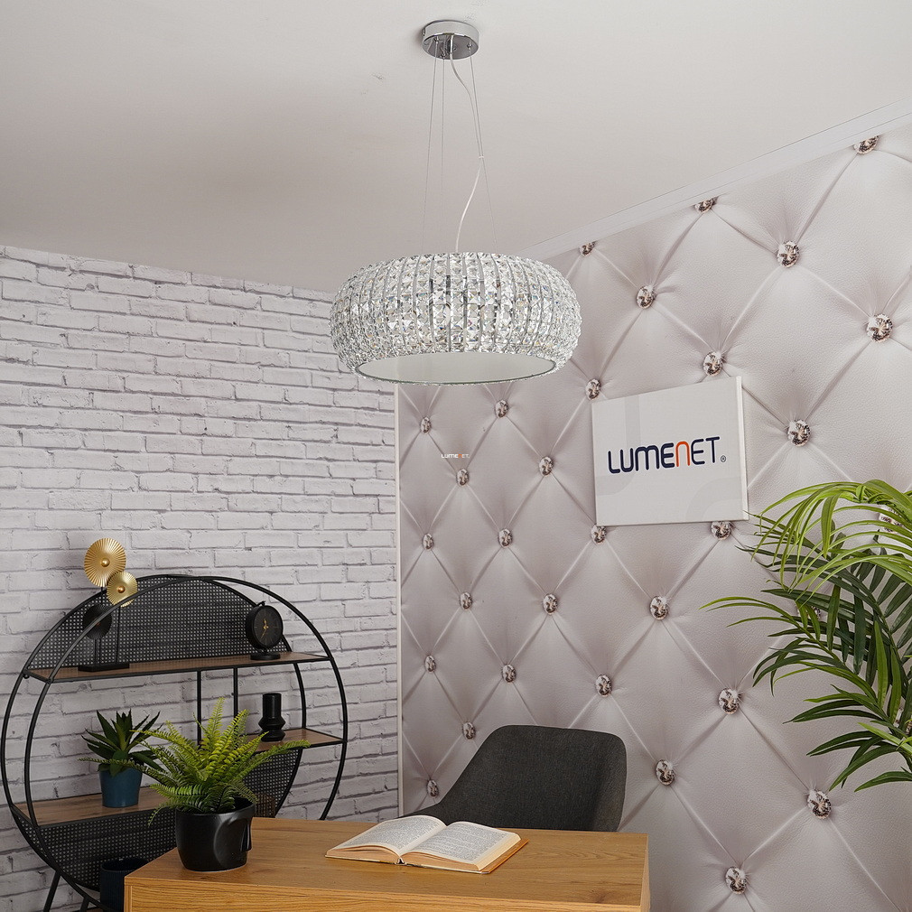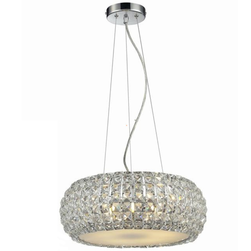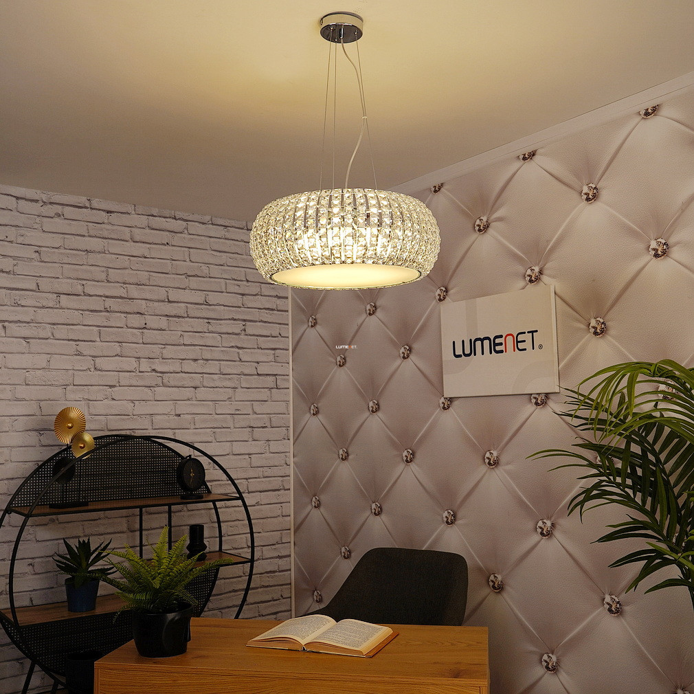 Candelabrul din cristal Sophia Azzardo 5024-6P Glamour este un corp de iluminat modern cu diametrul de 52 cm, caracterizat printr-o combinație de materiale metalice și cristal. Candelabrul are șase socluri E14 care necesită surse de lumină înlocuibile, permițându-vă să personalizați intensitatea luminii, temperatura culorii și puterea. Corp de iluminat are o suprafață cromată, care conferă interiorului un aspect elegant. Produsul are protecție IP20, fiind potrivit pentru utilizare în interior. Dimensiunile ambalajului sunt 58x58x26 cm, iar candelabrul cântărește 1 kg. Producătorul este Azzardo, iar codul logistic al produsului este 5024-6P.