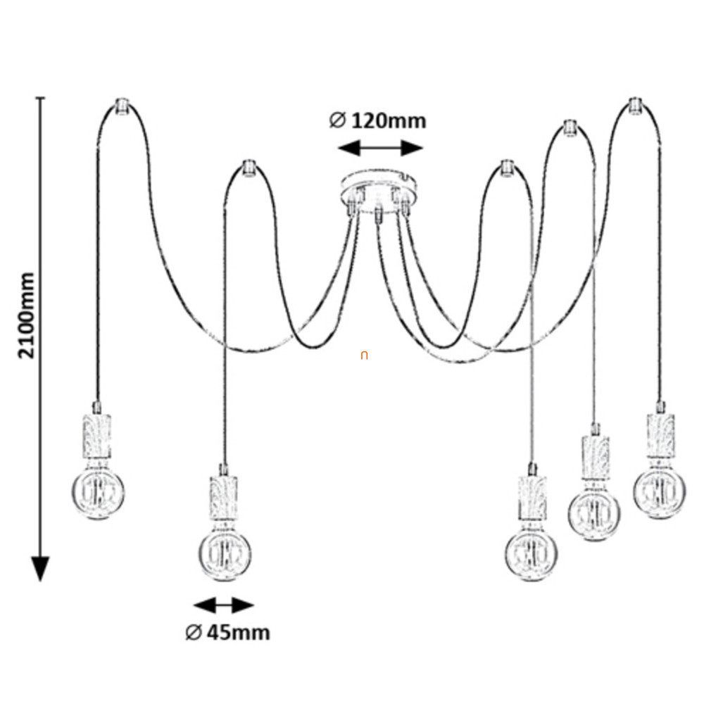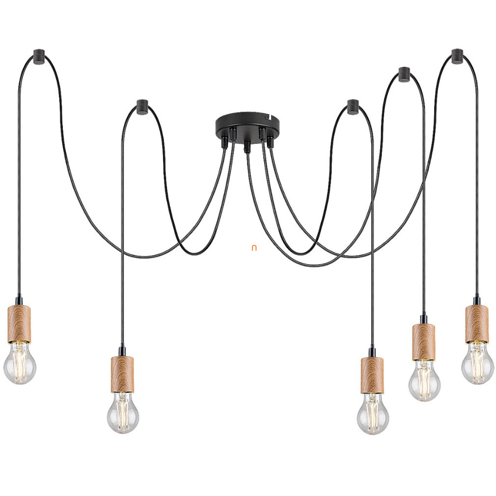 Candelabrul cu cablu Dollien Rábalux 72075 este un corp de iluminat modern, suspendat, cu cinci socluri E27, ceea ce îl face compatibil cu o varietate de surse de lumină înlocuibile. Corpul de iluminat este fabricat din metal într-o combinație de culori negru mat și lemn, asigurând un aspect elegant pentru orice interior. Înălțimea reglabilă permite poziționarea candelabrului în funcție de cerințele individuale, până la o înălțime maximă de 2100 mm. Corpul de iluminat are un diametru de 45 cm, fiind potrivit pentru iluminarea încăperilor medii și mari. Candelabrul are protecție IP20 și, prin urmare, este recomandat pentru utilizare în interior. Produsul nu include o sursă de lumină, astfel încât temperatura culorii, fluxul luminos și puterea iluminatului pot fi selectate liber prin instalarea becurilor E27 dorite. Candelabrul cântărește 1,13 kg, iar ambalajul măsoară 13x14x16 cm, ceea ce facilitează transportul și depozitarea.