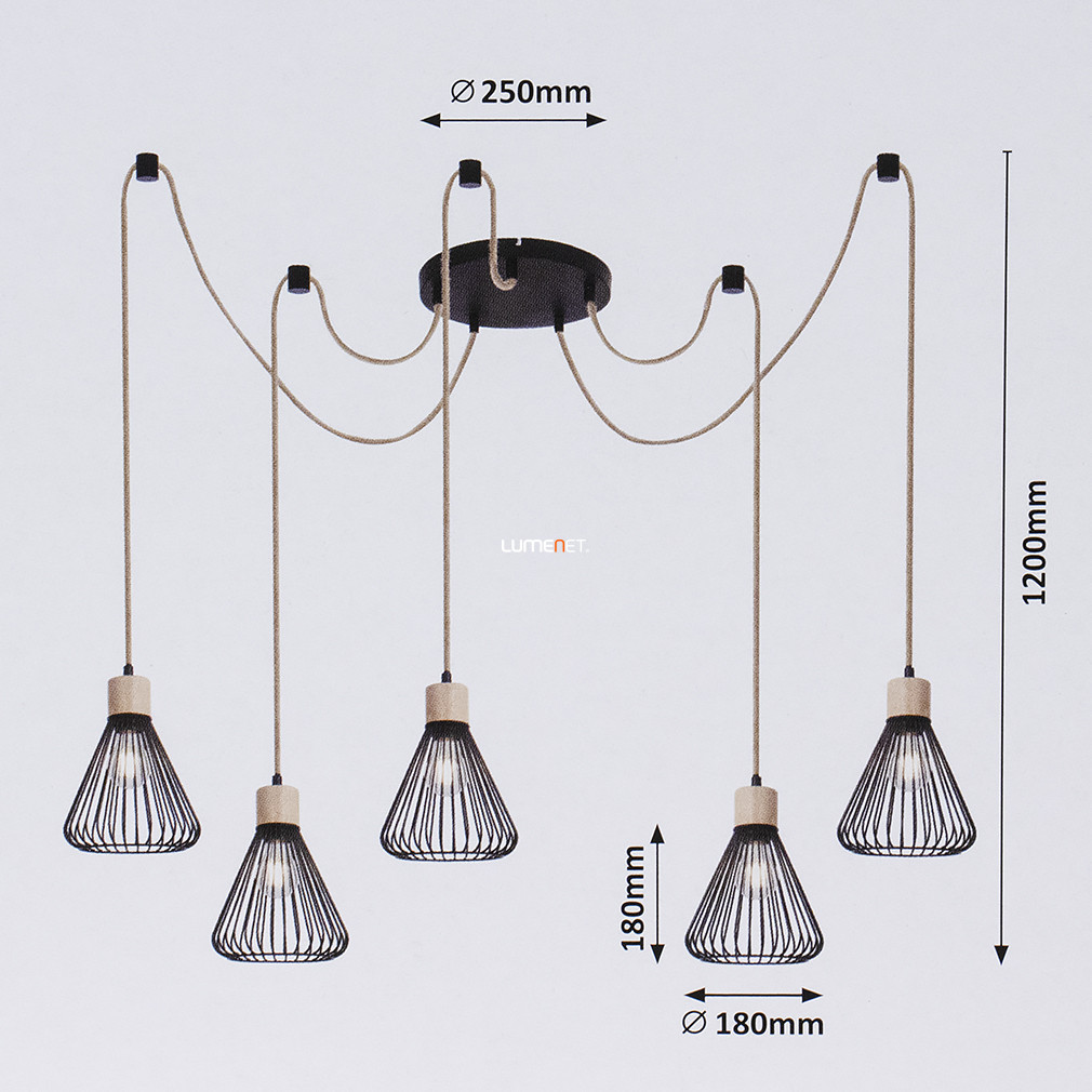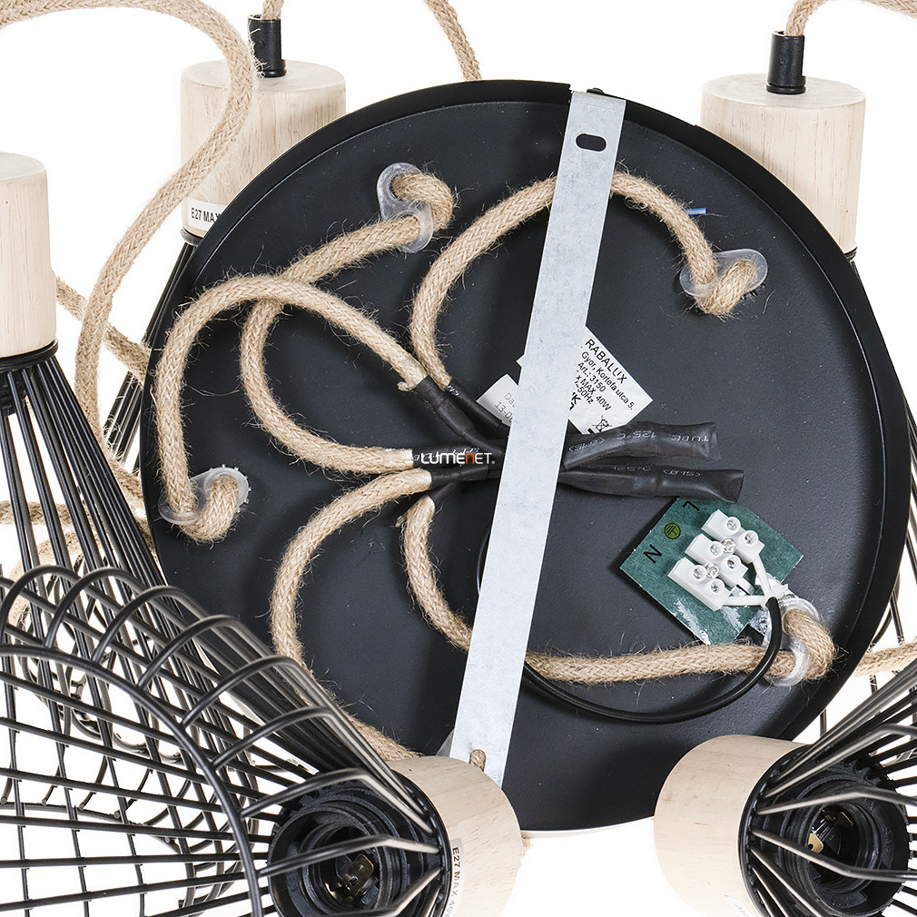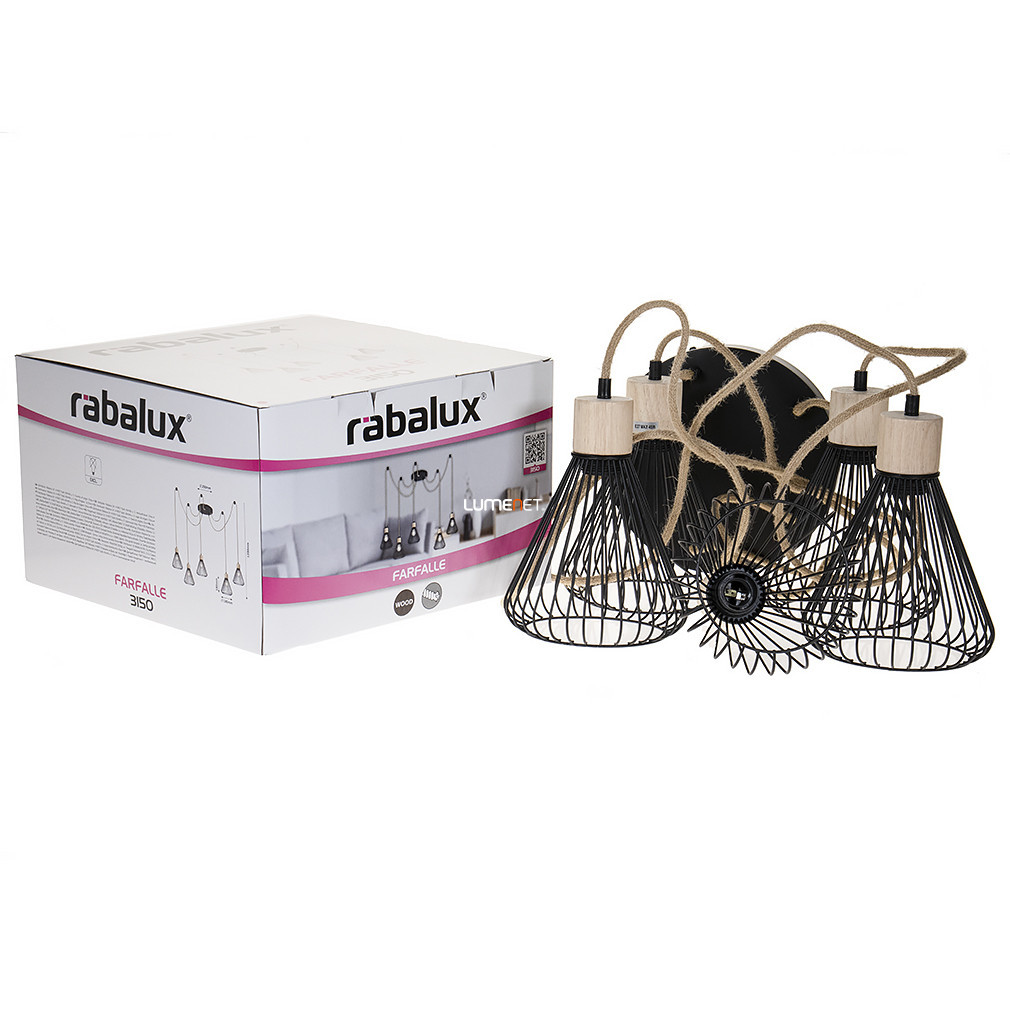 Farfalle Rábalux 3150 este un corp de iluminat suspendat în stil scandinav, cu cinci socluri E27, ceea ce îl face compatibil cu o varietate de surse de lumină înlocuibile. Lampa este realizată dintr-o combinație de metal și lemn în culori negru și lemn, conferindu-i un aspect modern și natural. Designul abajurului din grilaj și cablul reglabil vă permit să personalizați înălțimea până la 1200 mm. Candelabrul are protecție IP20 și este potrivit pentru utilizare în interior. Produsul cântărește 3,1 kg, iar dimensiunile ambalajului sunt 38x38x23 cm. Sursele de lumină nu sunt incluse în pachet. Producătorul este Rábalux.