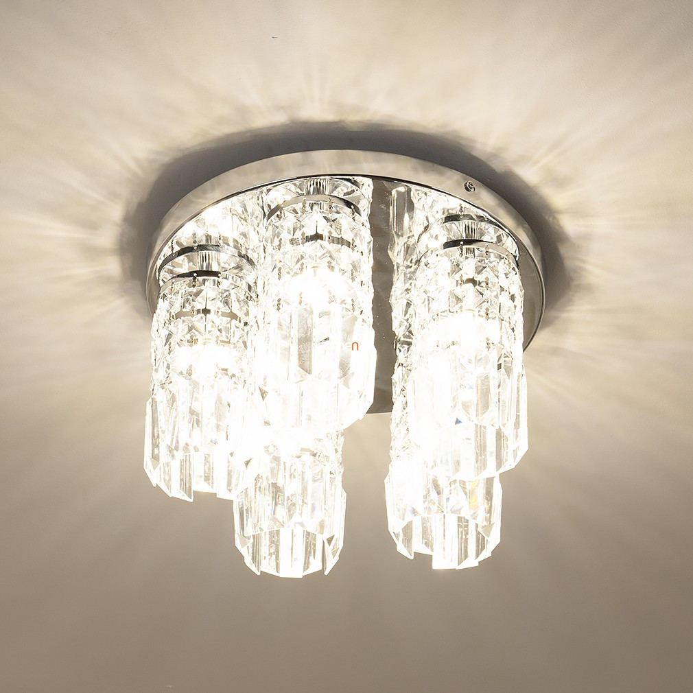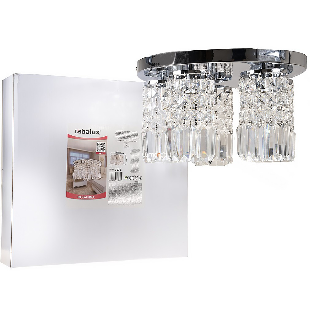 Candelabrul din cristal Rosanna Rábalux 3570 este un corp de iluminat modern pentru tavan, cu un diametru de 38 cm, care combină metalul și sticla într-un design elegant, cromat și transparent. Corp de iluminat are cinci socluri G9, care pot fi echipate cu surse de lumină înlocuibile, permițând reglarea intensității luminoase, a temperaturii culorii și a puterii, după cum este necesar. Candelabrul are o înălțime de 215 mm și un grad de protecție IP20, fiind potrivit pentru utilizare în interior. Produsul nu include o sursă de lumină și nu este reglabil. Dimensiunile ambalajului sunt 44x44x11 cm, iar produsul cântărește 4,06 kg. Rosanna Rábalux 3570 este alegerea ideală pentru iluminatul decorativ și funcțional în spații de locuit mai spațioase, unde elementele de cristal și structura metalică creează un efect armonios de ansamblu.