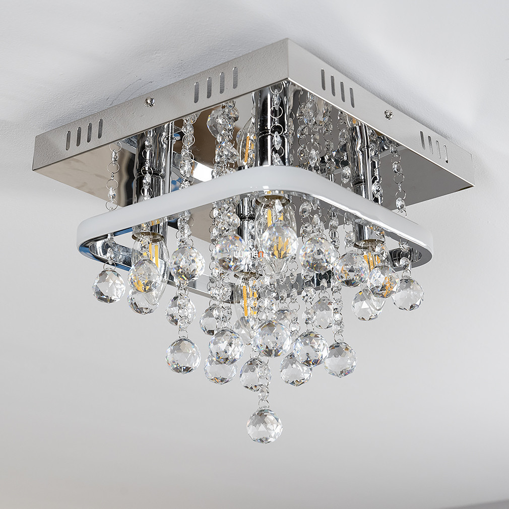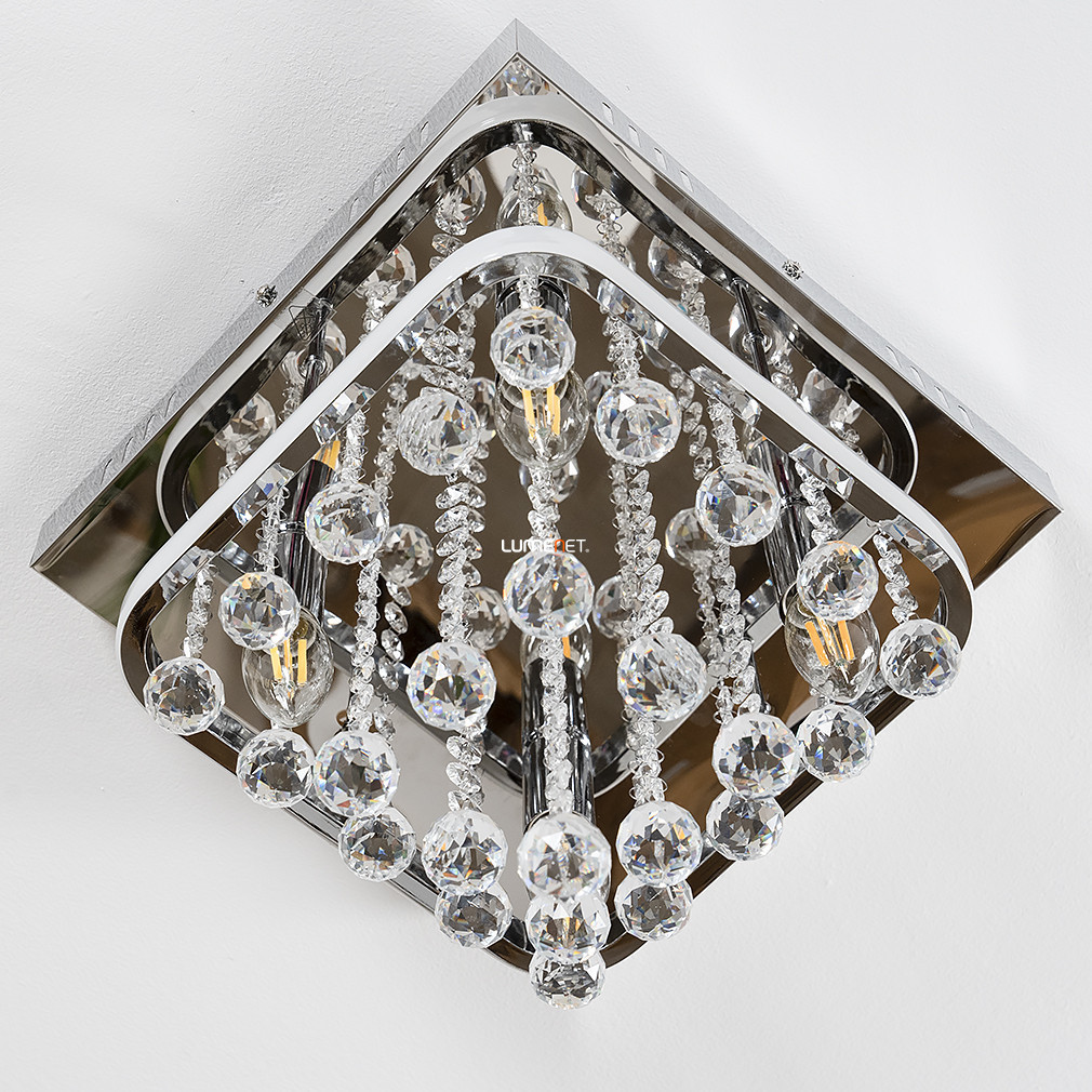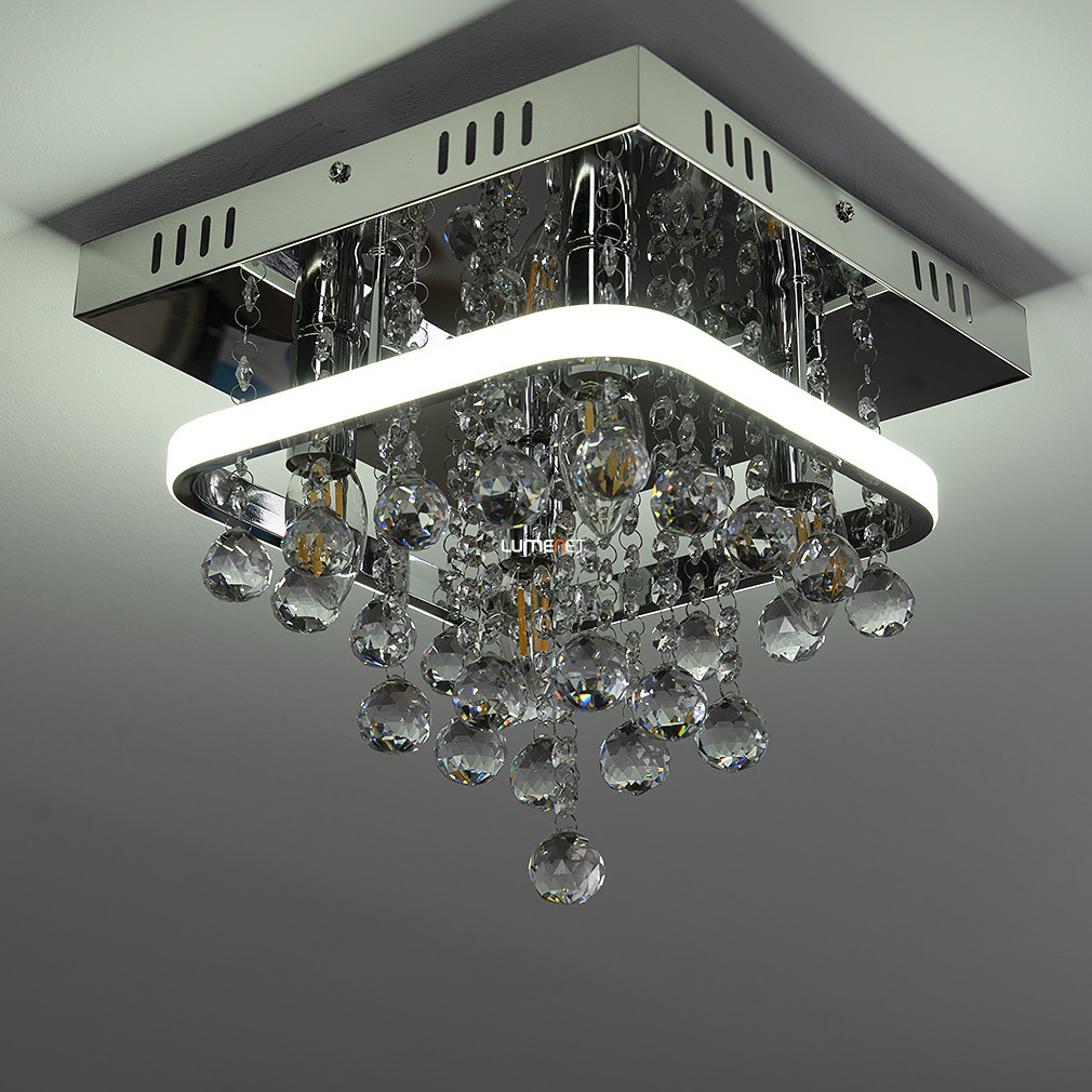 Candelabrul din cristal Pallas Rábalux 2238 este un corp de iluminat modern pentru tavan, cu patru socluri E14 și un modul LED integrat de 23 W. Corpul de iluminat are un flux luminos de 1470 lumeni și o temperatură de culoare de 4000 Kelvin, oferind o lumină albă rece. Candelabrul este realizat din decoruri din cristal de sticlă, elemente metalice și din plastic, în culori crom, alb și transparent. Marginea exterioară cu LED-uri asigură o distribuție uniformă a luminii, iar lampa de tavan are protecție IP20. Dimensiunile produsului sunt: 300 mm lungime, 300 mm lățime și 285 mm înălțime, cu o greutate de 2,53 kg. Durata medie de viață este de 20.000 de ore, sursa de lumină nu este inclusă, dar modulul LED este încorporat. Candelabrul este conceput pentru iluminatul rezidențial, utilizare în interior, iar ambalajul său măsoară 36x14x36 cm. Producătorul este Rábalux.