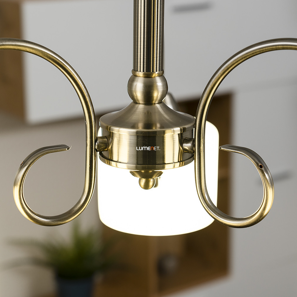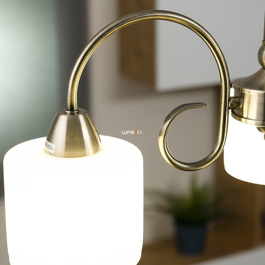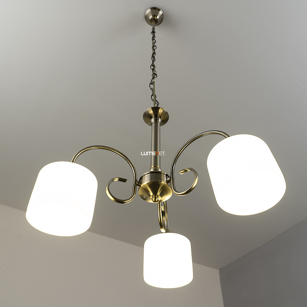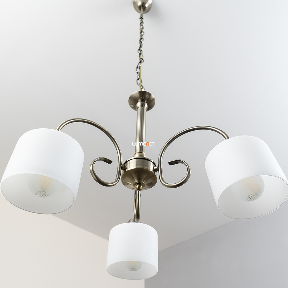 Candelabrul Edith Rábalux 7275 din bronz antic are trei brațe, conferind un aspect clasic oricărui interior. Lampa este realizată din metal și sticlă, cu abajururi din sticlă albă și cadru din bronz antic. Candelabrul este prevăzut cu trei socluri E27, care pot fi echipate cu surse de lumină înlocuibile, achiziționate separat. Puterea, fluxul luminos, temperatura culorii și culoarea luminii corpului de iluminat depind de becurile alese, deoarece sursa de lumină nu este inclusă. Produsul nu este reglabil și are protecție IP20, fiind potrivit pentru utilizare în interior. Candelabrul are un diametru de 540 mm, o înălțime de 1000 mm și o greutate de 3,36 kg. Producătorul este Rábalux, codul logistic este 7275. Dimensiunile ambalajului sunt: 43 cm lățime, 40 cm lungime și 42 cm înălțime.