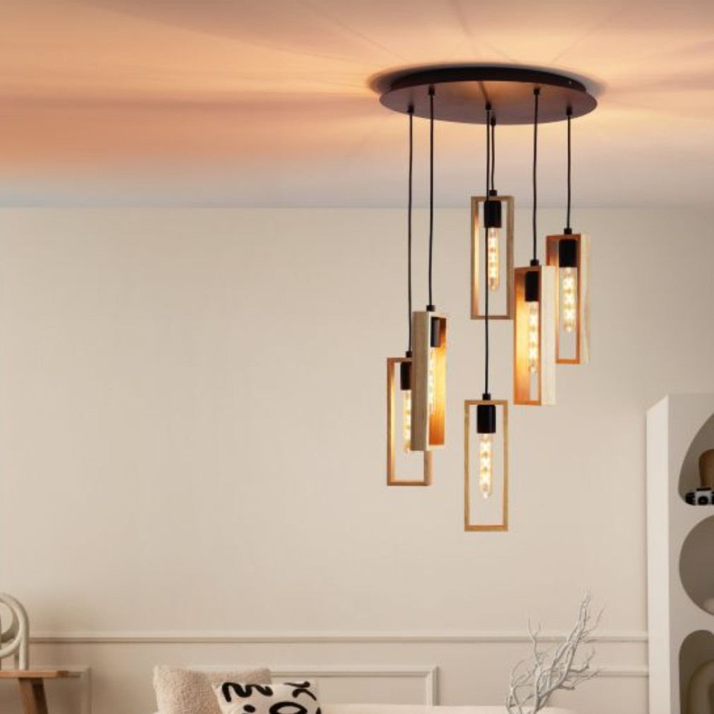 Candelabru modern cu șase socluri, rame din lemn - Littleton Eglo 44054