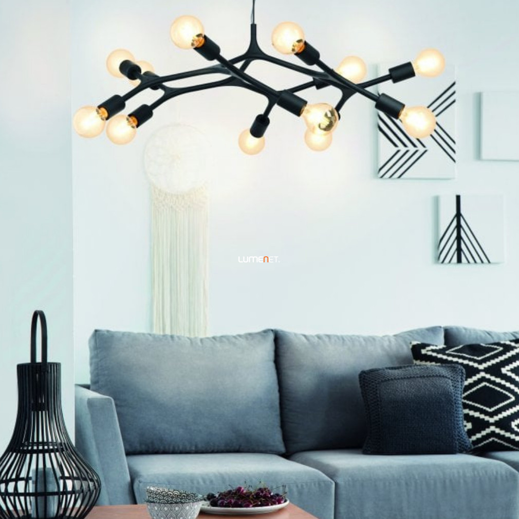 Candelabrul modern Bocadella Eglo 98347 în culoare neagră are 12 socluri E27 care pot fi echipate cu surse de lumină înlocuibile. Corpul de iluminat are un diametru de 920 mm, o înălțime de 1100 mm, este fabricat din oțel și are un stil de designer. Candelabrul nu include surse de lumină și are un grad maxim de protecție IP20. Produsul cântărește 5,84 kg. Ambalajul are o lățime de 83 cm, o lungime de 91 cm și o înălțime de 37 cm. Producătorul este EGLO. Corpul de iluminat nu este reglabil și, prin urmare, funcționează la o luminozitate fixă. Codul logistic este 98347.