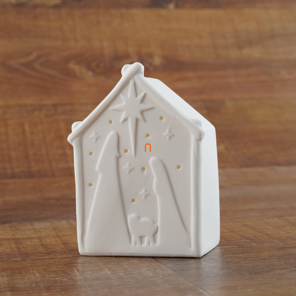 Casă de Crăciun iluminată din ceramică cu stea, 12,5 cm