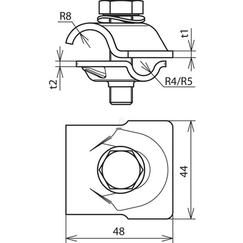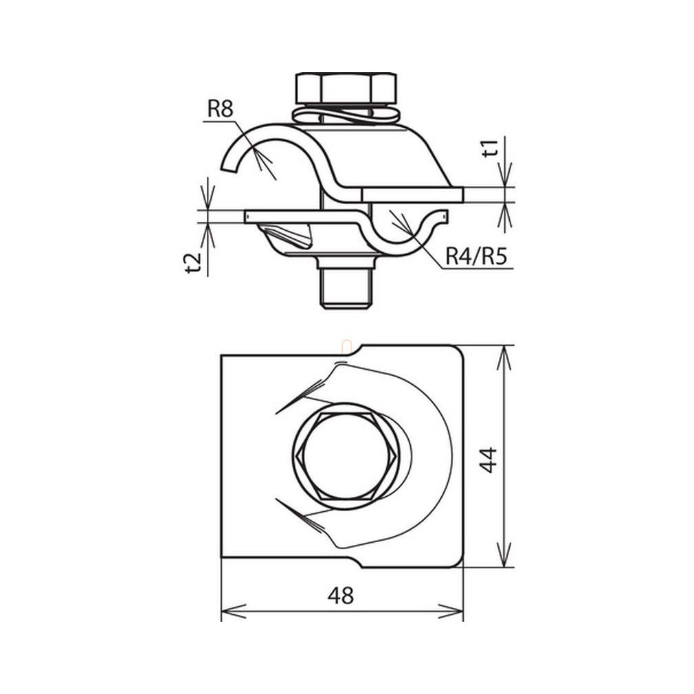 Clemă DEHN MV pentru St/Zn Rd 8-10/16 mm cu șurub cu cap hexagonal și șaibă elastică 392050 MVK 8.10 16 SKM10X40 FSC STTZN